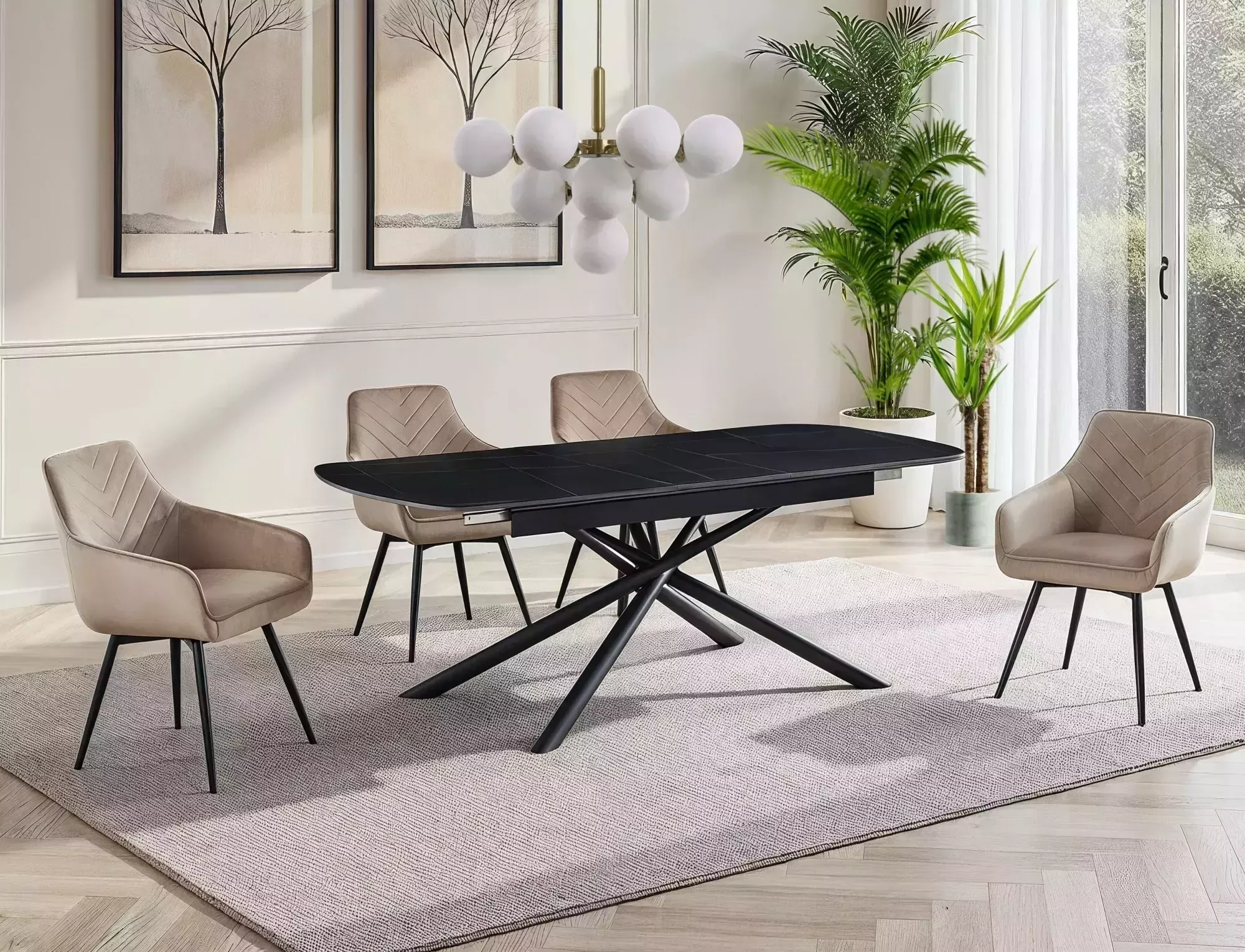 Stół rozkładany, blat: ceramika, stelaż: metal, kolor: czarny mat / czarny mat.