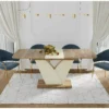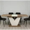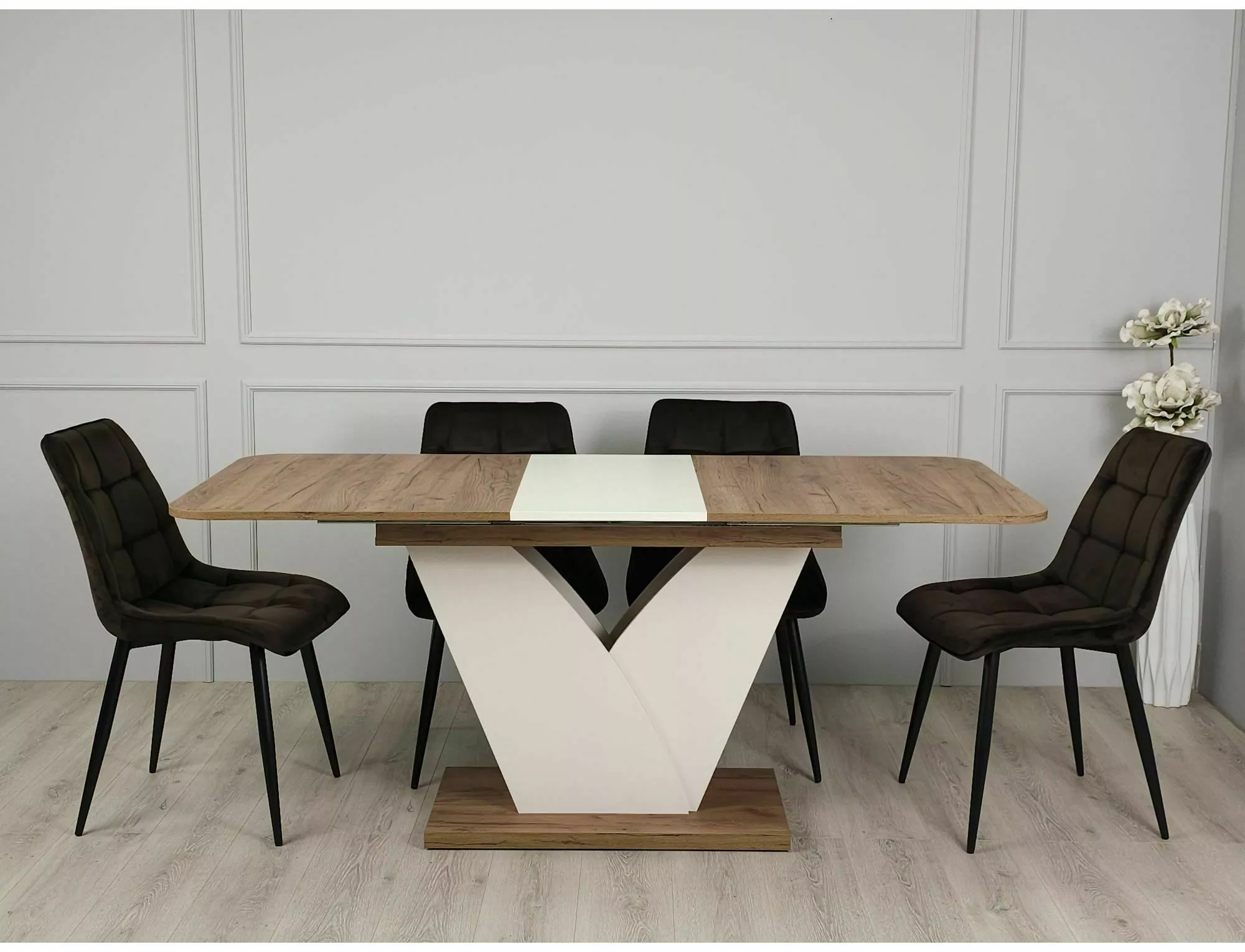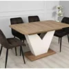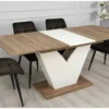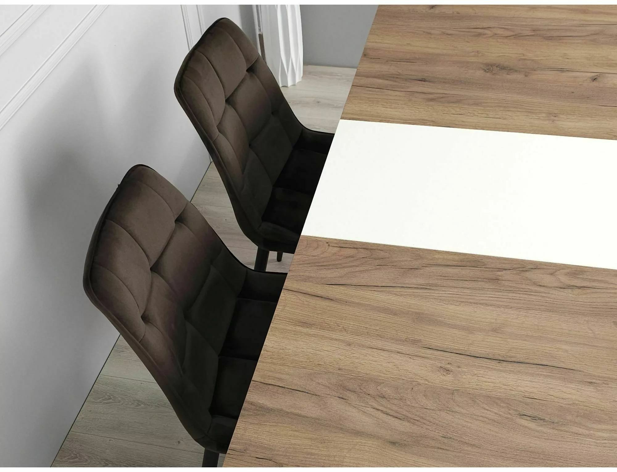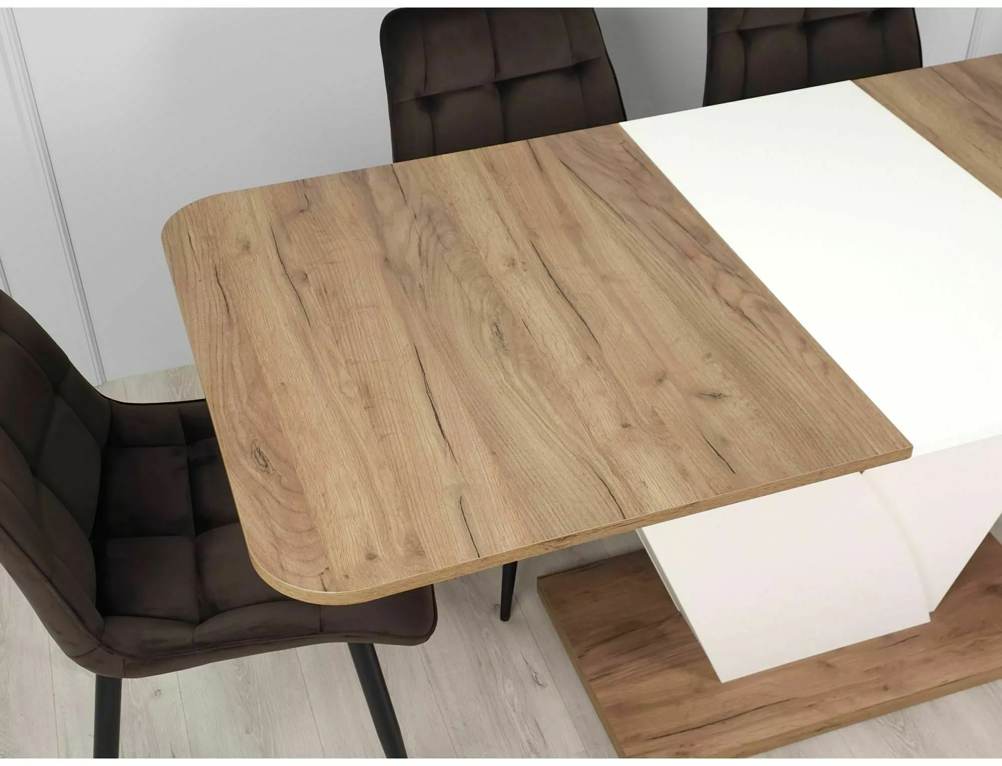 Stół rozkładany, blat: płyta laminowana, stelaż: płyta laminowana, kolor: dąb craft tobacco / krem.