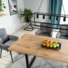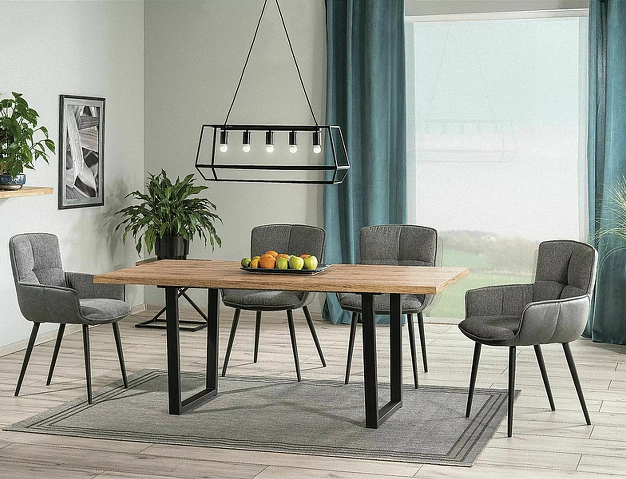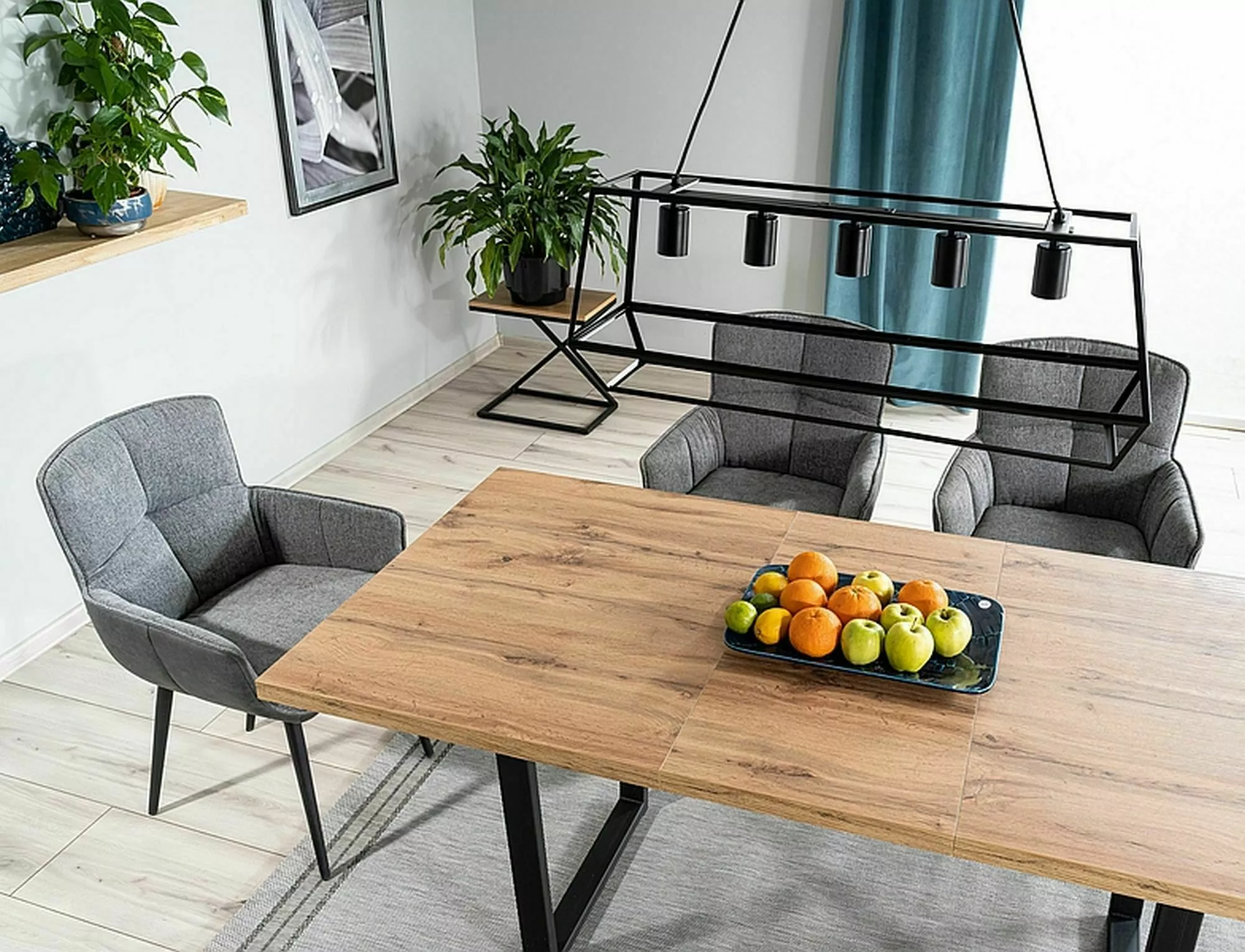 Stół rozkładany, blat: MDF + okleina, stelaż: metal, kolor: dąb artisan / czarny.