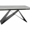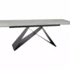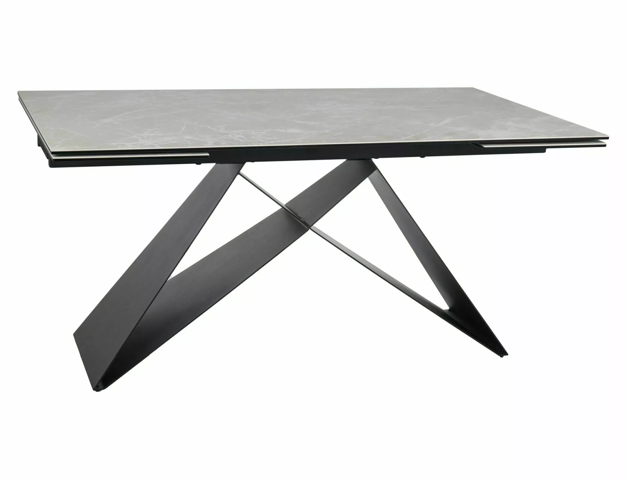 Stół rozkładany, blat: szklo hartowane + ceramika DIAMOND CREAM, stelaż: metal, kolor: kremowy mat / czarny mat.