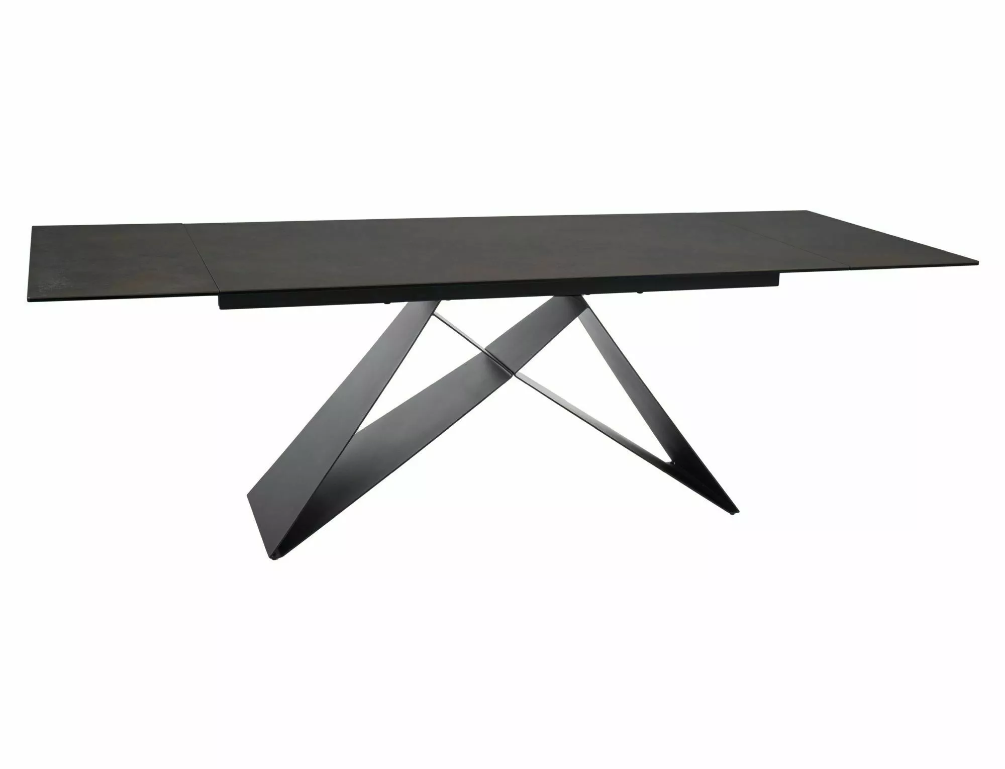 Stół rozkładany, blat: szklo hartowane + ceramika OSSIDO BRUNO, stelaż: metal, kolor: brąz mat / czarny mat.
