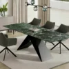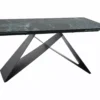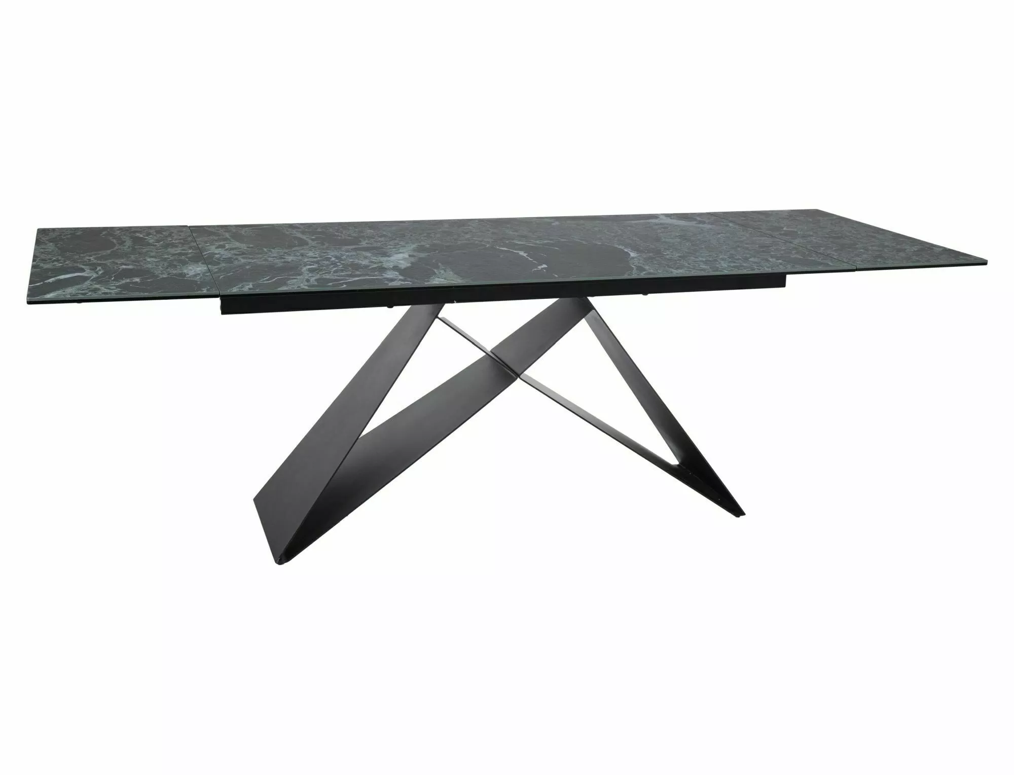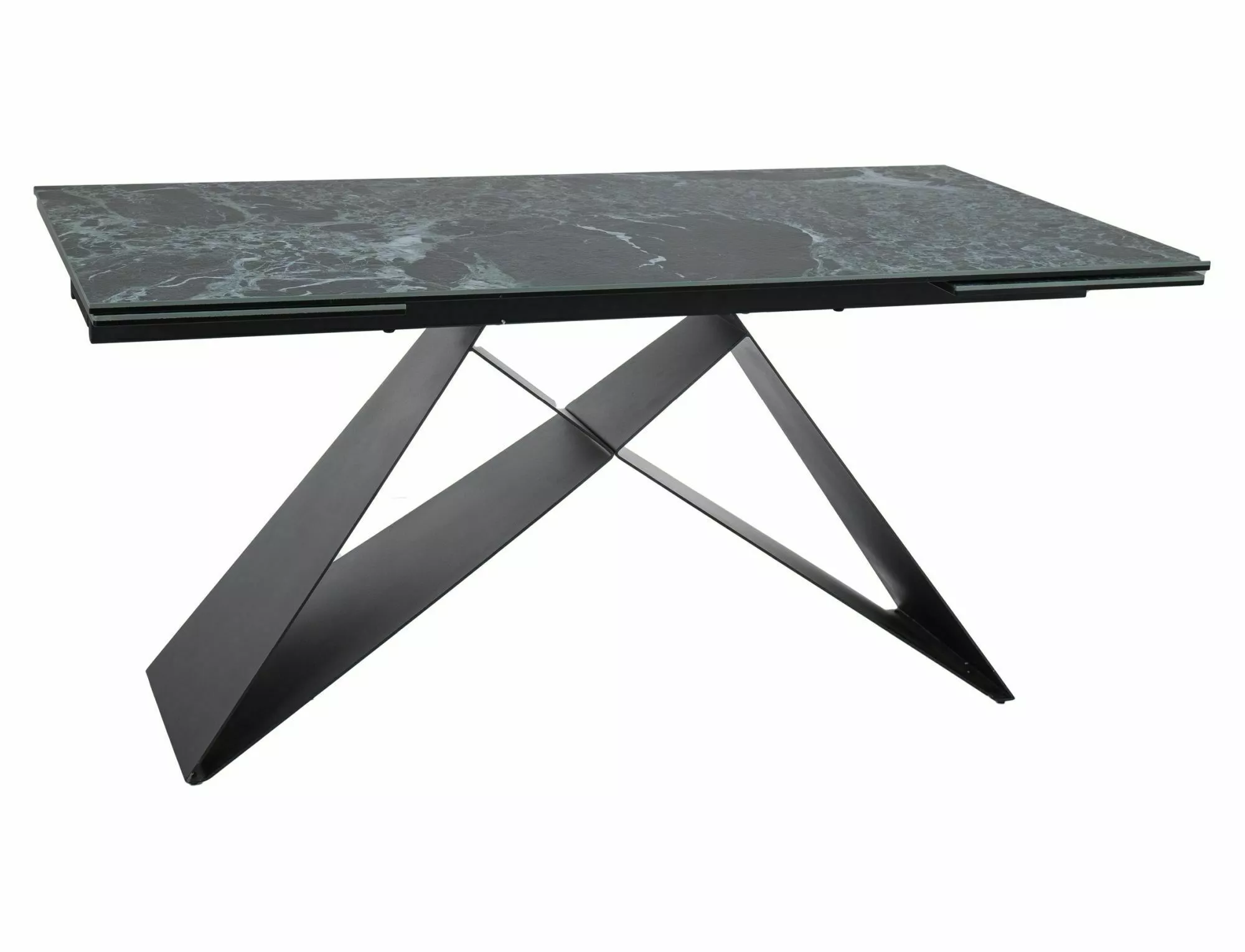 Stół rozkładany, blat: szkło hartowane + ceramika VERDE ALPI, stelaż: metal, kolor: morski mat / czarny mat.