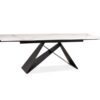 Stół rozkładany, blat: szkło hartowane + włoska ceramika STATUARIO VENATO, efekt marmuru, stelaż: metal, kolor: biały / czarny mat.