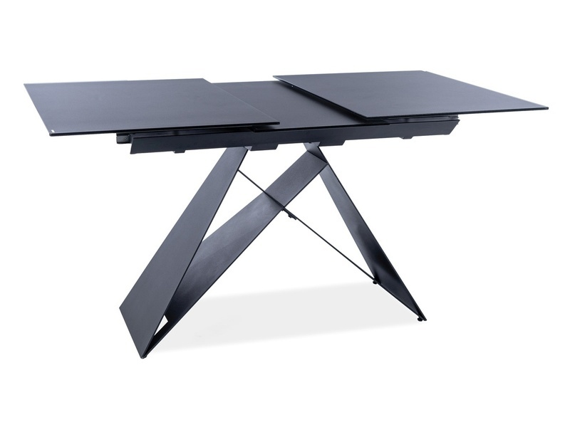 Stół rozkładany, blat: szkło hartowane, stelaż: metal, kolor: czarny mat.