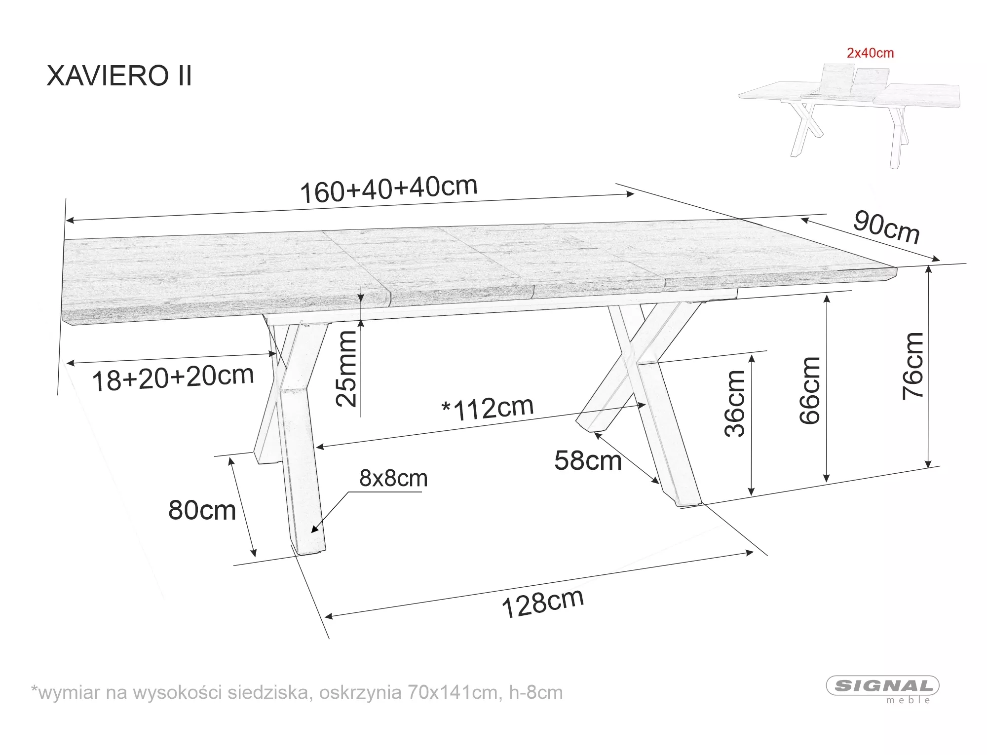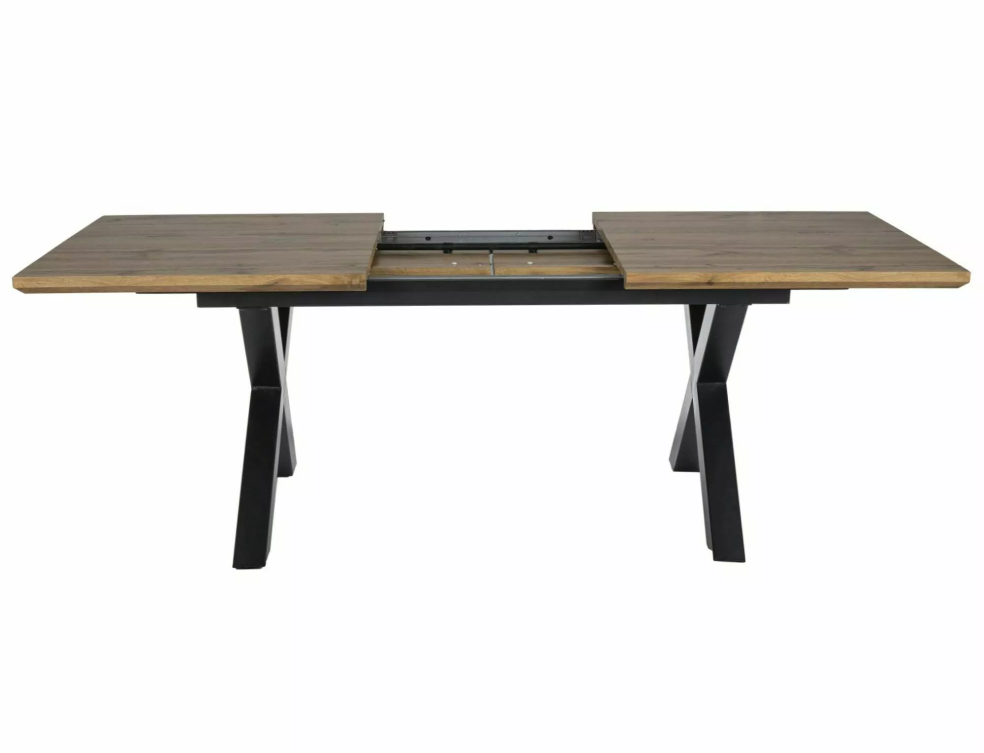Stół rozkładany, blat: MDF + okleina, stelaż: metal, kolor: dąb artisan / czarny mat. Podwójny mechanizm motylkowy: 2x40cm.