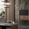 wymiary: 102/40/128 cm; materiał: płyta meblowa laminowana / MDF foliowany / stal malowana proszkowo, kolor: orzechowy – czarny