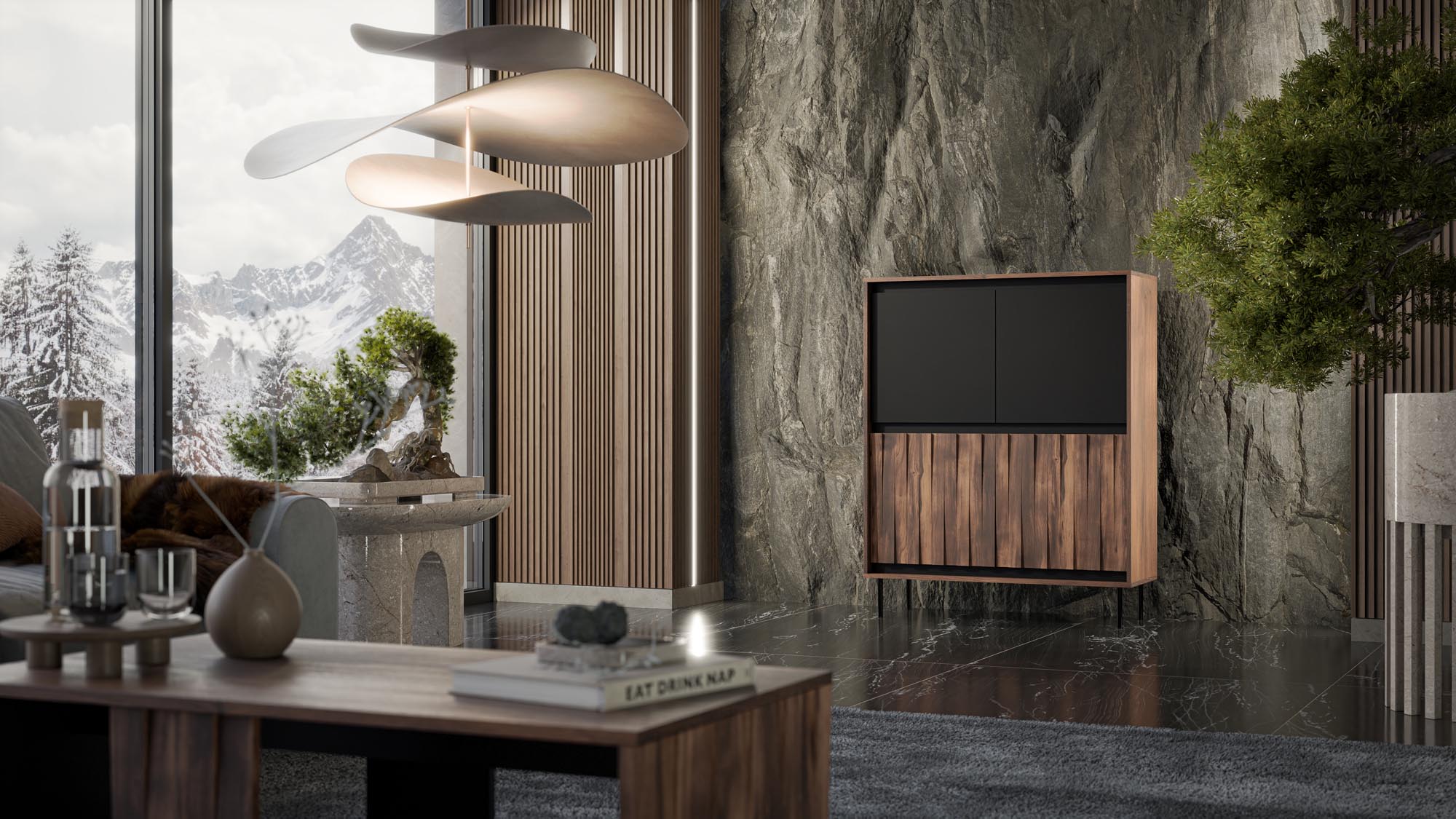 SWING KM-2 komoda orzechowy/czarny, nogi: czarny (2p=1szt)