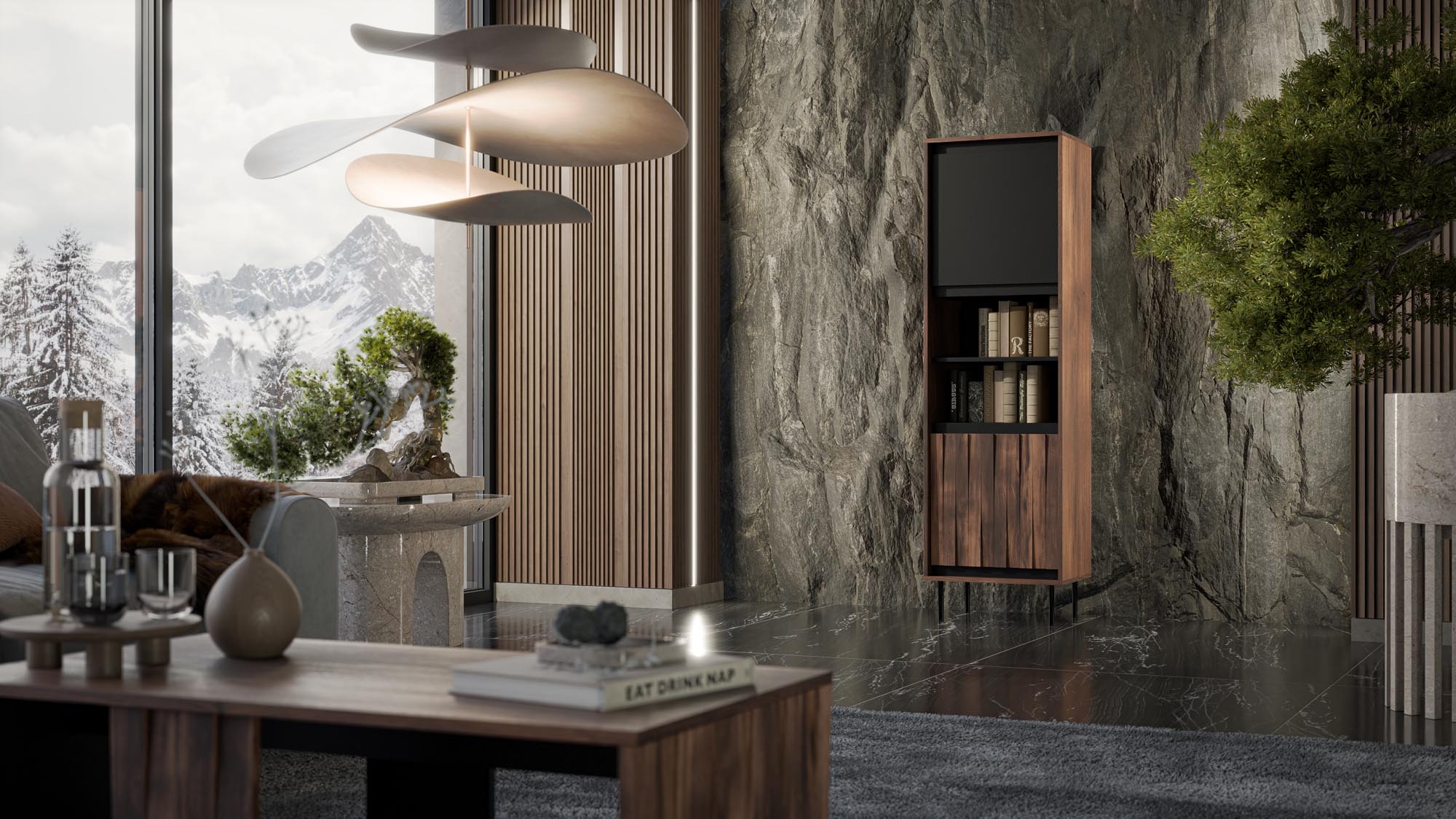 SWING W-1 witryna orzechowy/czarny, nogi: czarny (1p=1szt)