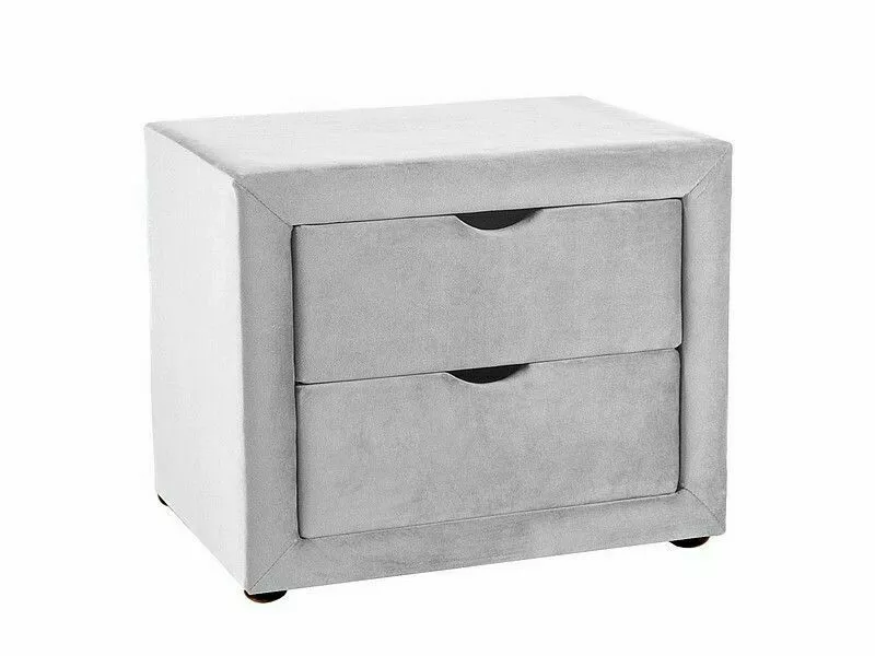 Szafka nocna z 2-ma szufladami, tkanina aksamit, kolor: Bluvel 03 – jasny szary.
