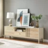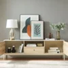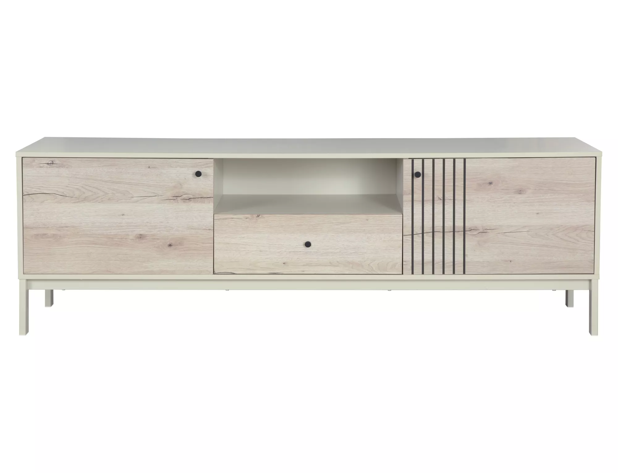 Szafka RTV, blat: płyta laminowana, stelaż: metal, kolor: off white + dąb alpejski / off white.