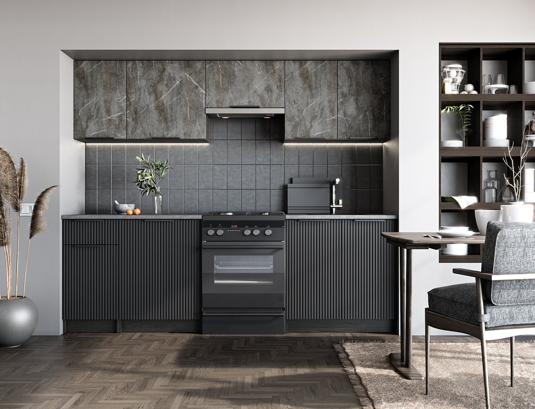 TAMARA 240 kuchnia zestaw korpus: carbon wood, front: popielaty marmur / czarny (10p=1szt)