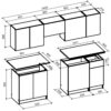 Długość zestawu: 240 cm, fronty szafe dolnych wykonane z MDF, podnośniki gazowe, blat grubości 28 mm, kolory: front – popielaty marmur / czarny, korpus – carbon wood, blat: popiel
