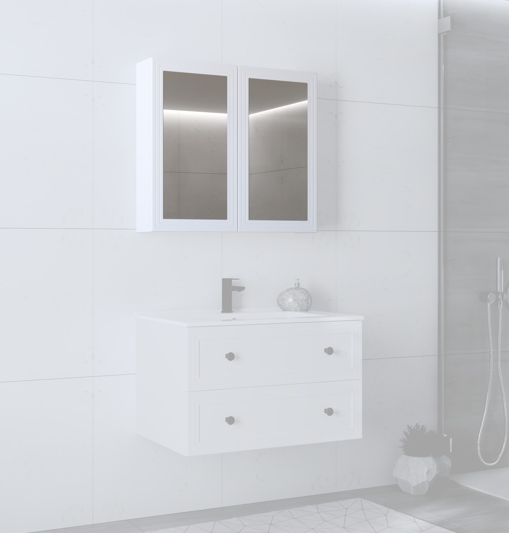 TORETO Szafka lustrzana 70×80/2D (MDF ramiak) biały (1p=1szt)