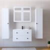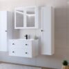 szafka, wymiary: 80/15/70 cm, materiał: korpus – płyta meblowa laminowana, front – MDF laminowany / lustro, zawiasy i prowadnice soft close, kolor: biały matowy