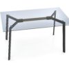 wymiary: 140/80/75 cm, materiał: szkło / stal malowana, kolor: blat – dymiony, nogi – czarny