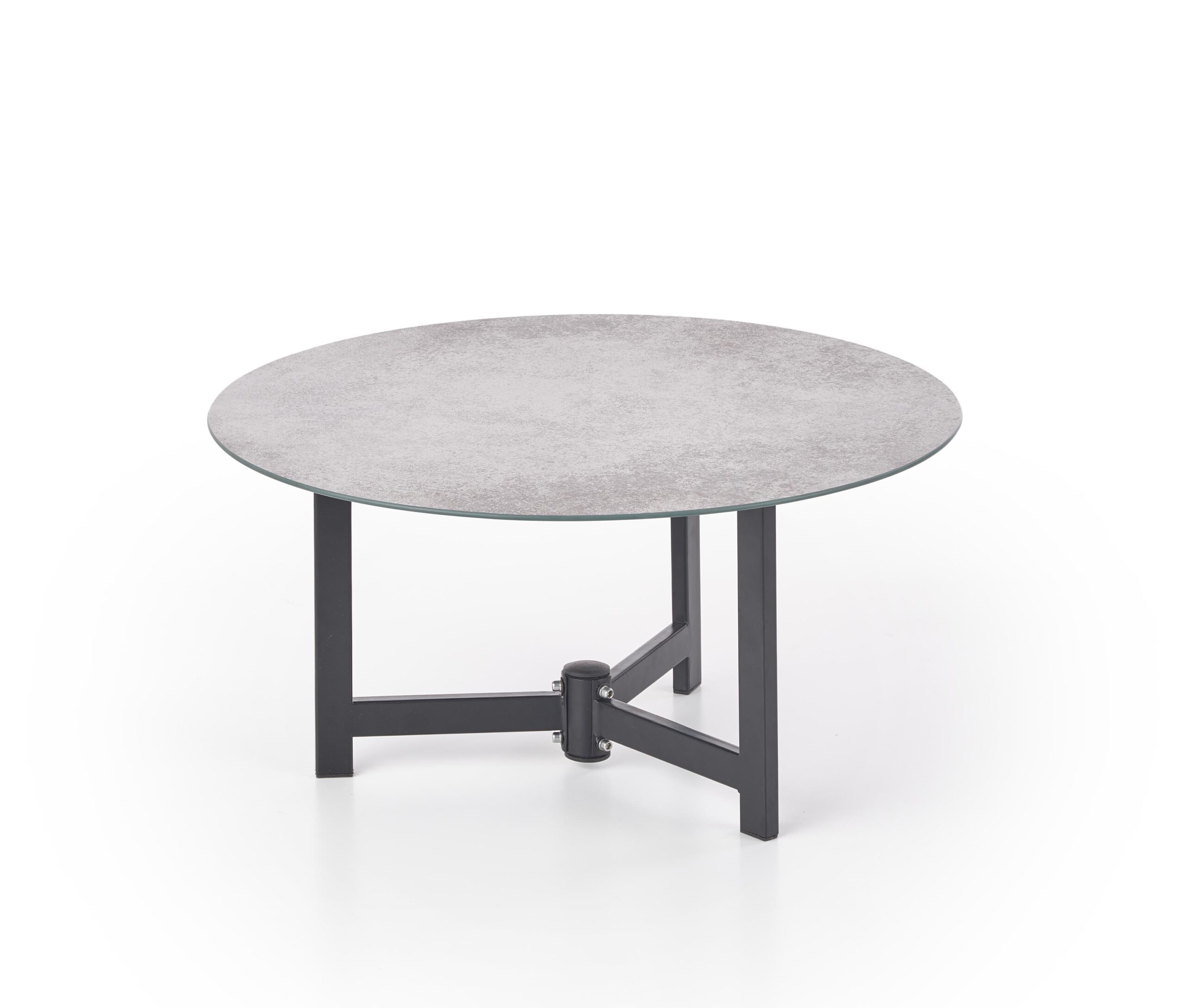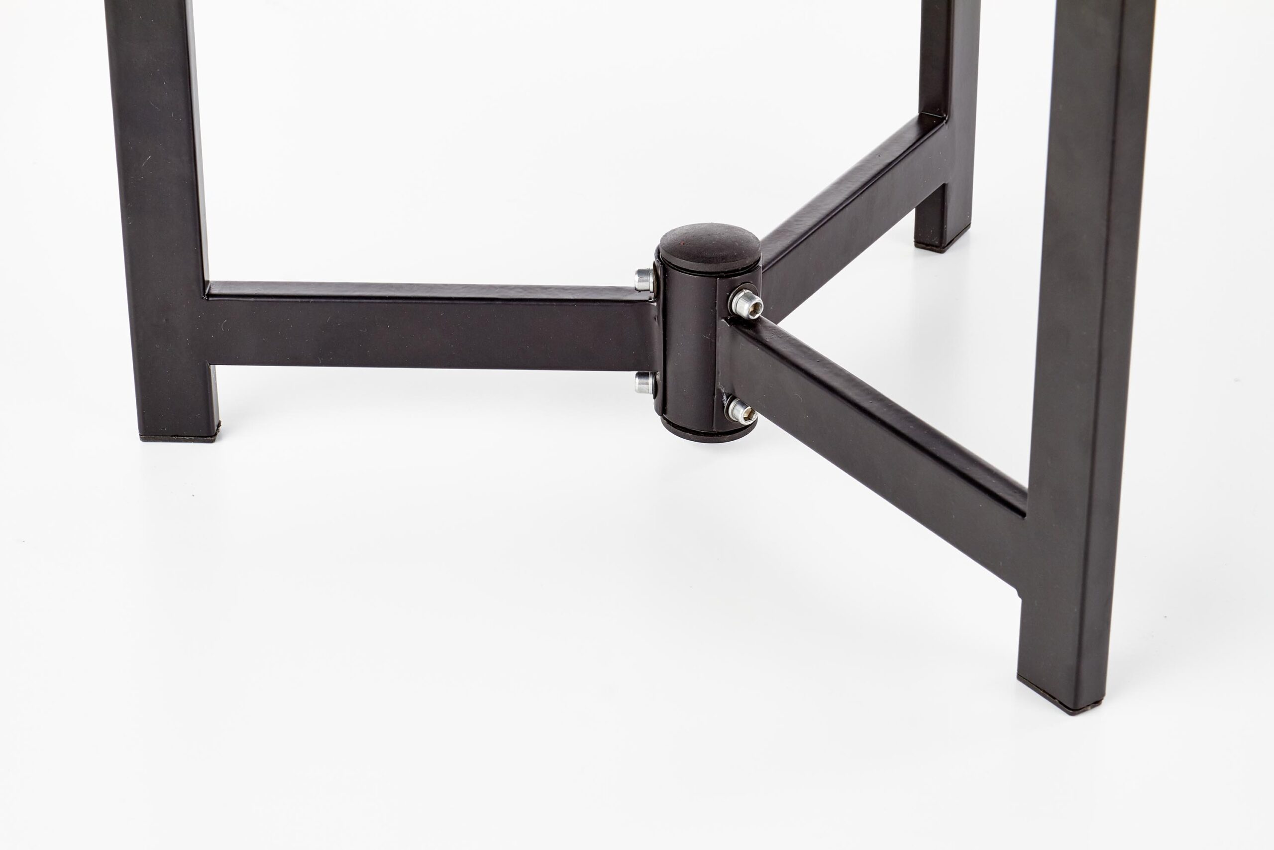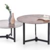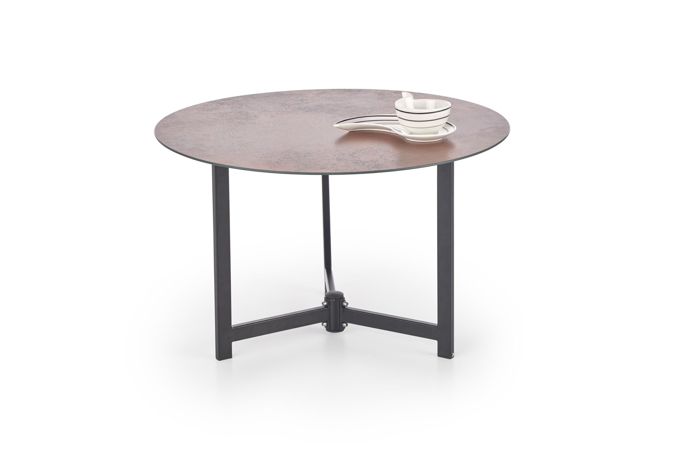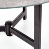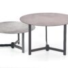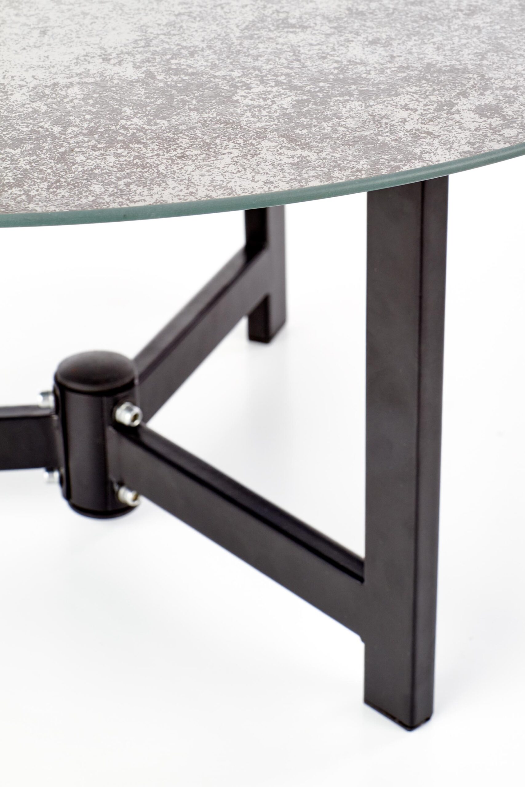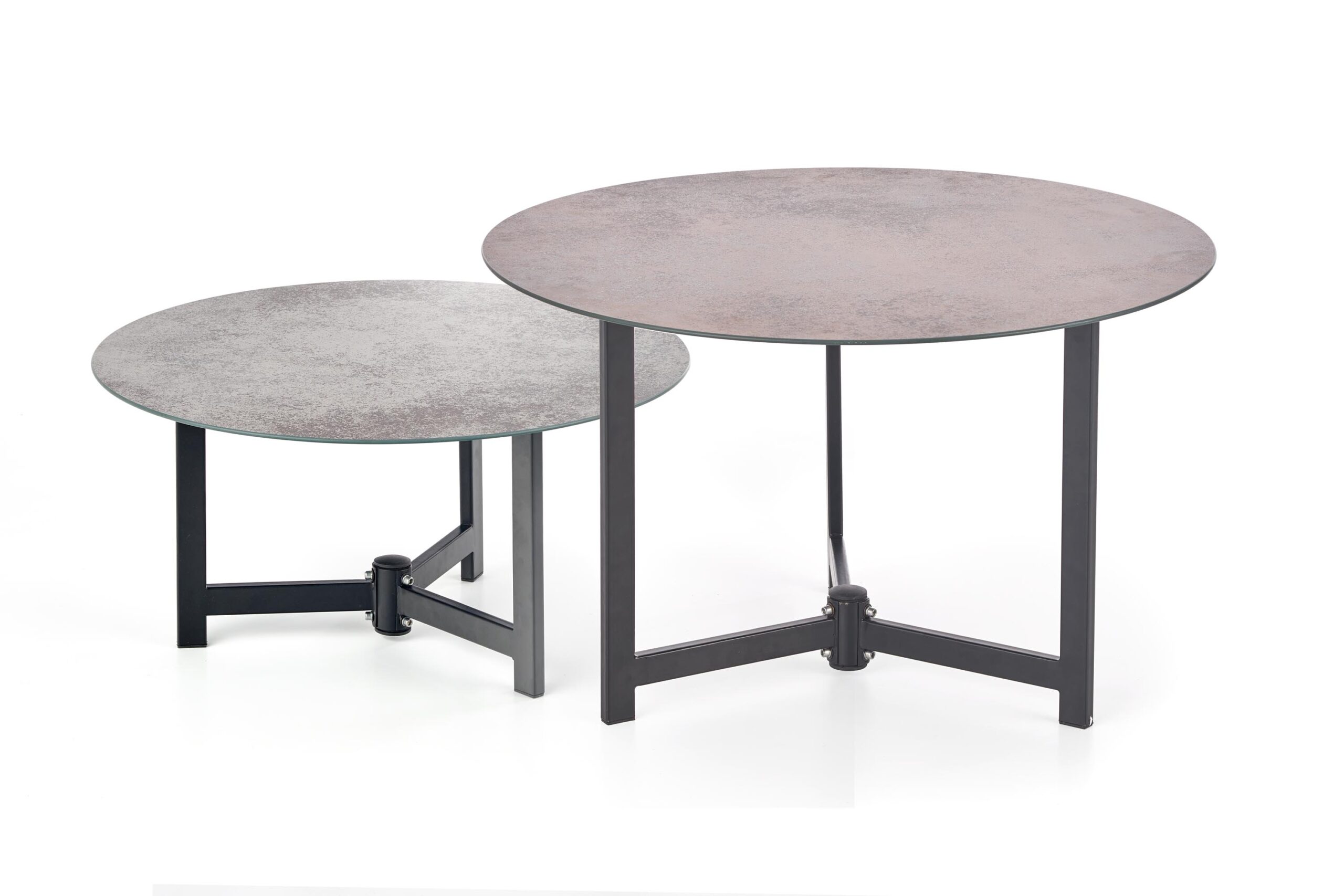 wymiary: duża – O70//43 cm, mała – O60//30 cm, zestaw 2 ław, materiał: szkło z imitacją kamienia / stal malowana proszkowo, kolor: brązowo – popielato – czarny