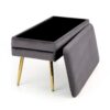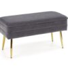 wymiary: 78/42/37 cm, ławka z funkcją pojemnika, materiał: tkanina velvet / stal chromowana lub stal malowana proszkowo, kolor: popielaty / złoty