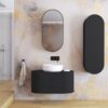 słupek, wymiary: 43/25/132 cm, materiał: MDF foliowany, prowadnice soft close – pełny wysuw, system push to open, zawieszki regulowane, kolor: czarny matowy