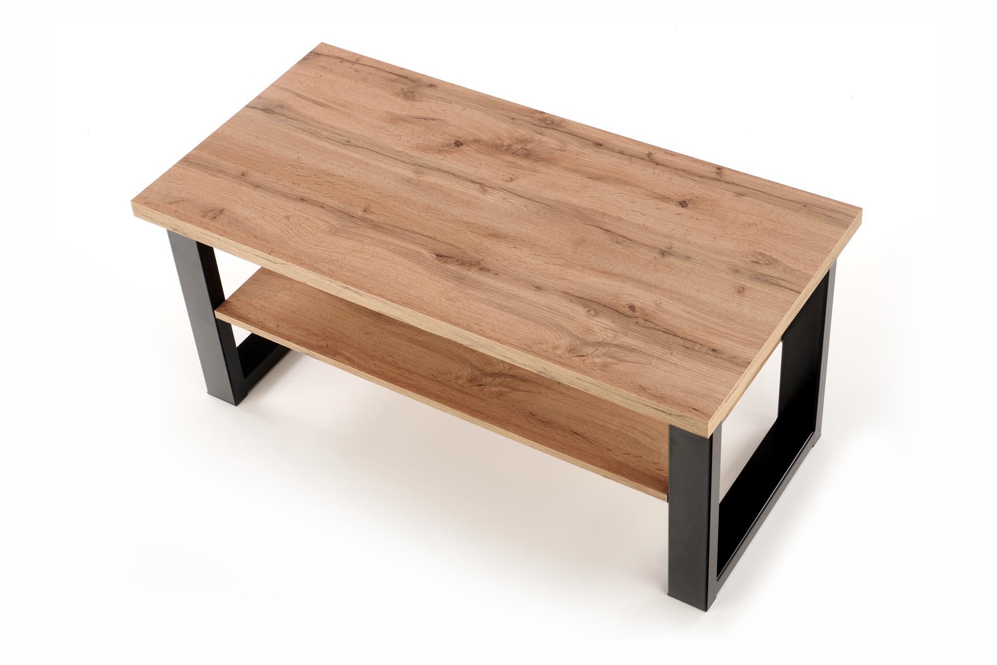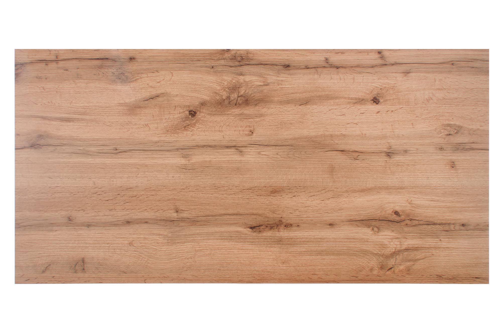 wymiary: 120/60/55 cm, materiał: blat – płyta meblowa okleinowana, na obrzeżach ABS, nogi – stal malowana proszkowo, kolor: blat – dąb wotan, nogi – czarne
