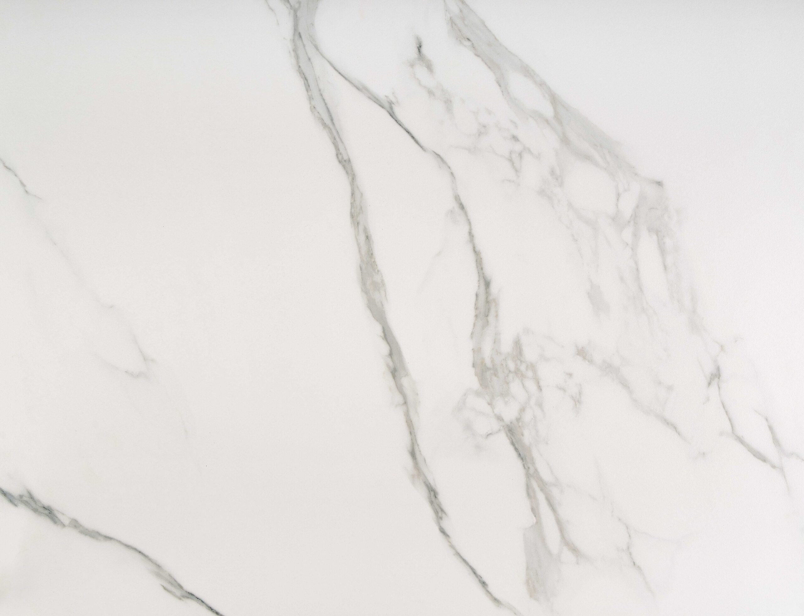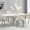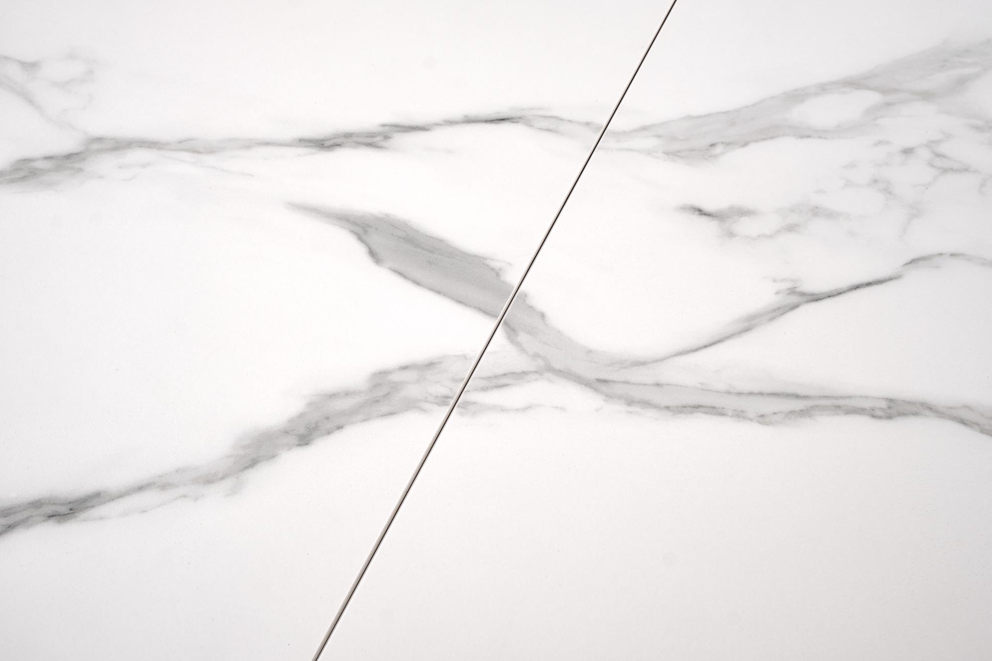 wymiary: 160-200/89/78 cm, materiał: spiek / MDF lakierowany / stal malowana proszkowo, kolor: blat – biały marmur, nogi – biały