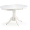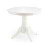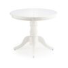 stół rozkładany, wymiary: 90÷124/90/75 cm, materiał: blat – płyta MDF + okleina naturalna, nogi – drewno lite, kolor: biały