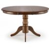 stół rozkładany, wymiary: 90÷124/90/75 cm, materiał: blat – płyta MDF + okleina naturalna, nogi – drewno lite, kolor: ciemny orzech