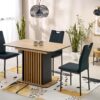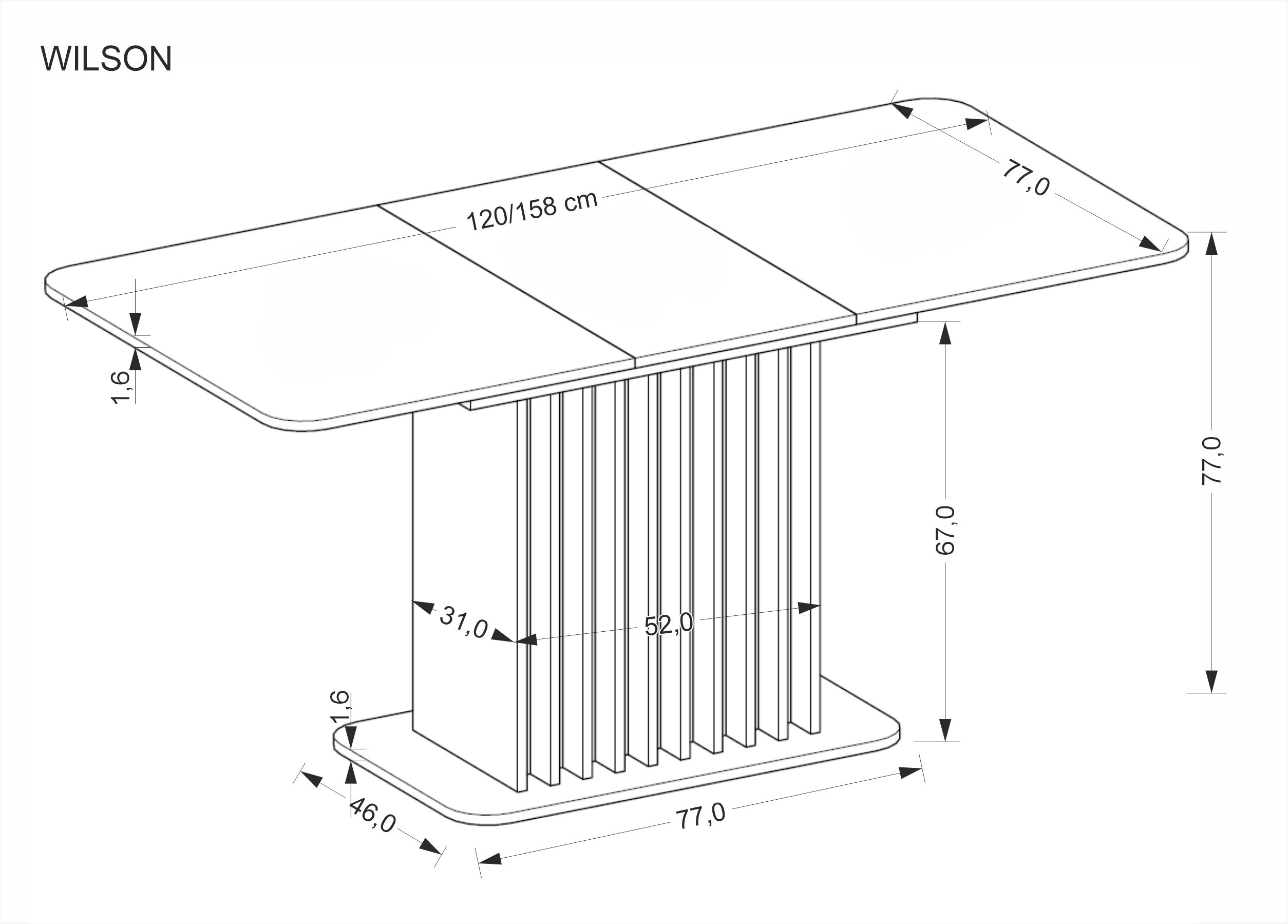 wymiary: 120-158/77/77 cm, stół rozkładany, materiał: płyta meblowa laminowana, kolor: blat – dąb artisan / czarny, nogi – dąb artisan / czarny