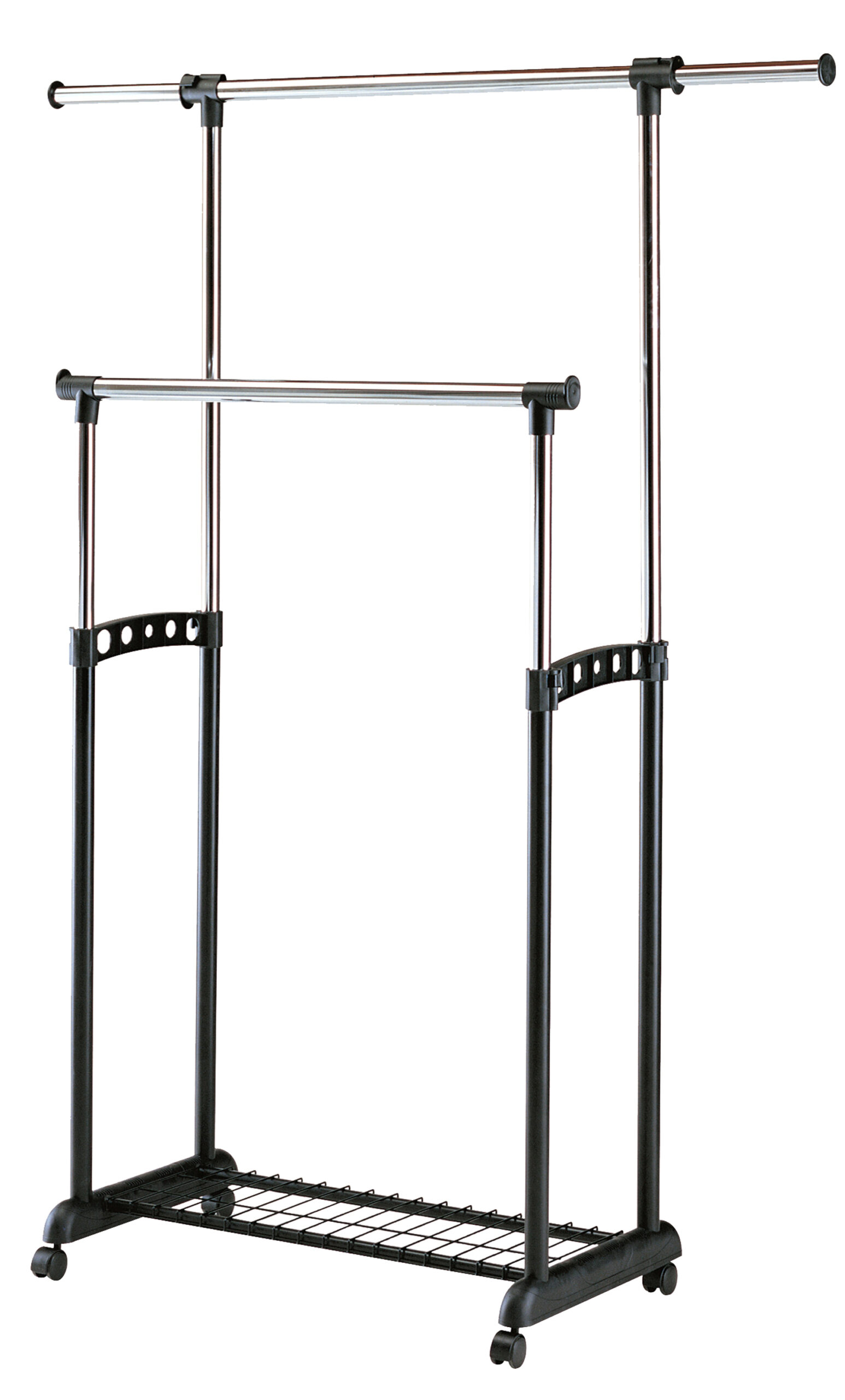 regulowana szerokość oraz wysokość, wymiary: 90÷142/44/97÷170 cm, materiał: stal chromowana / plastik, kolor: czarny