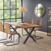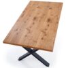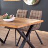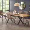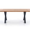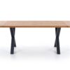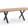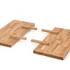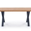 stół rozkładany, wymiary: 160÷250/90/76 cm, materiał: blat – płyta fornirowana, na obrzeżach drewno lite, nogi – stal malowana proszkowo, kolor: blat – jasny dąb, nogi – czarne