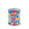wymiary: fi39/52 cm, materiał: atestowany, nietoksyczny i bezzapachowy plastik, kolor: piłeczki – wielobarwny, pokrowiec – bezbarwny z niebieskimi taśmami