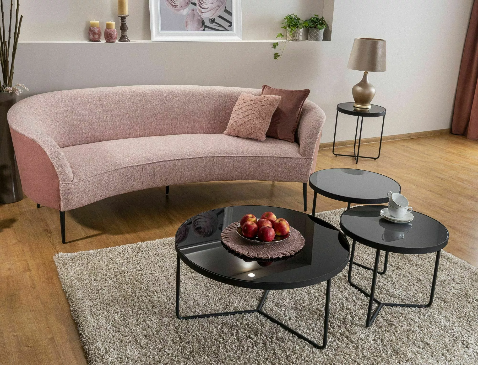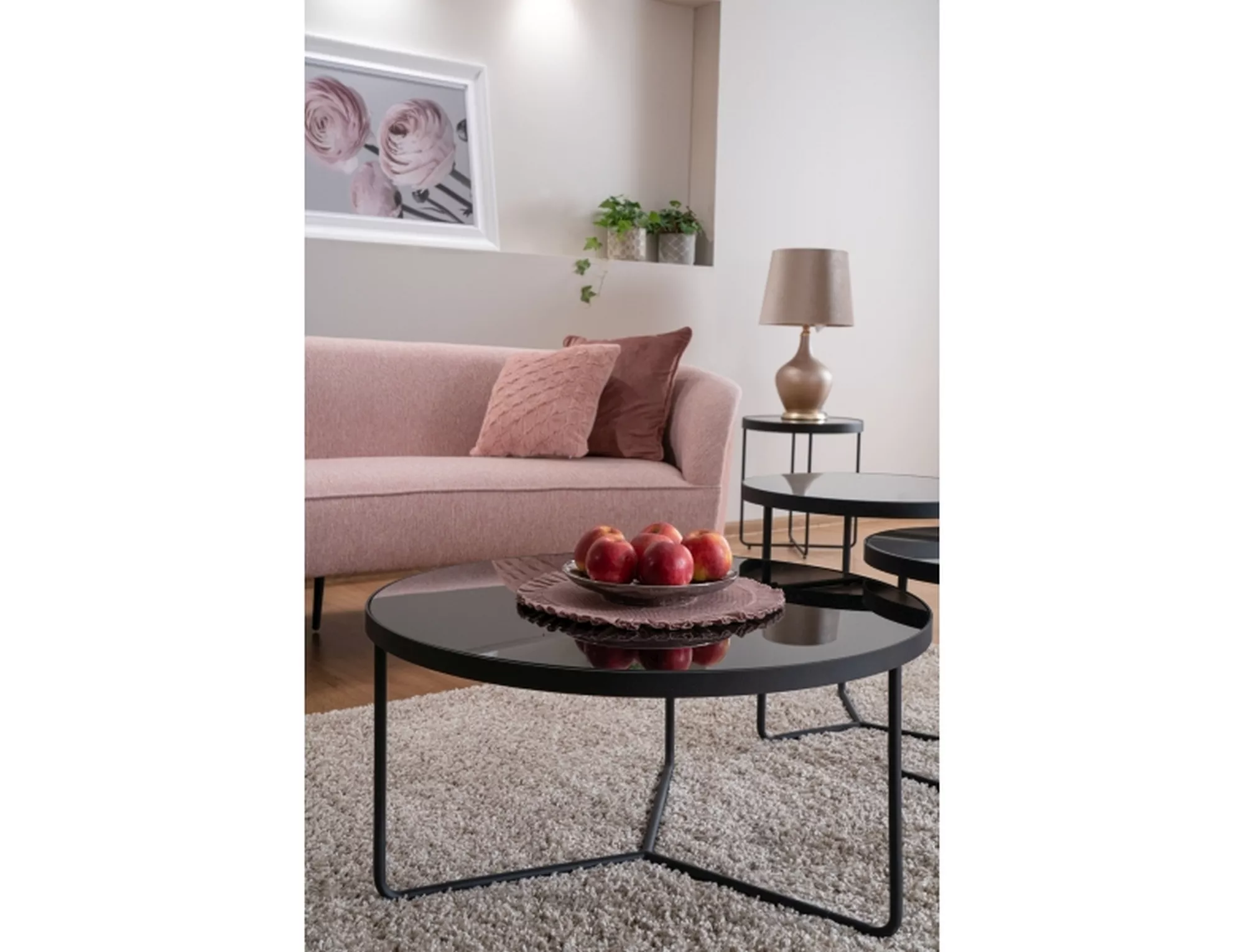 Zestaw ław, blat: szkło hartowane, stelaż: metal, kolor: jasny szary+szary+czarny / czarny.