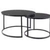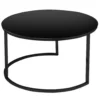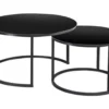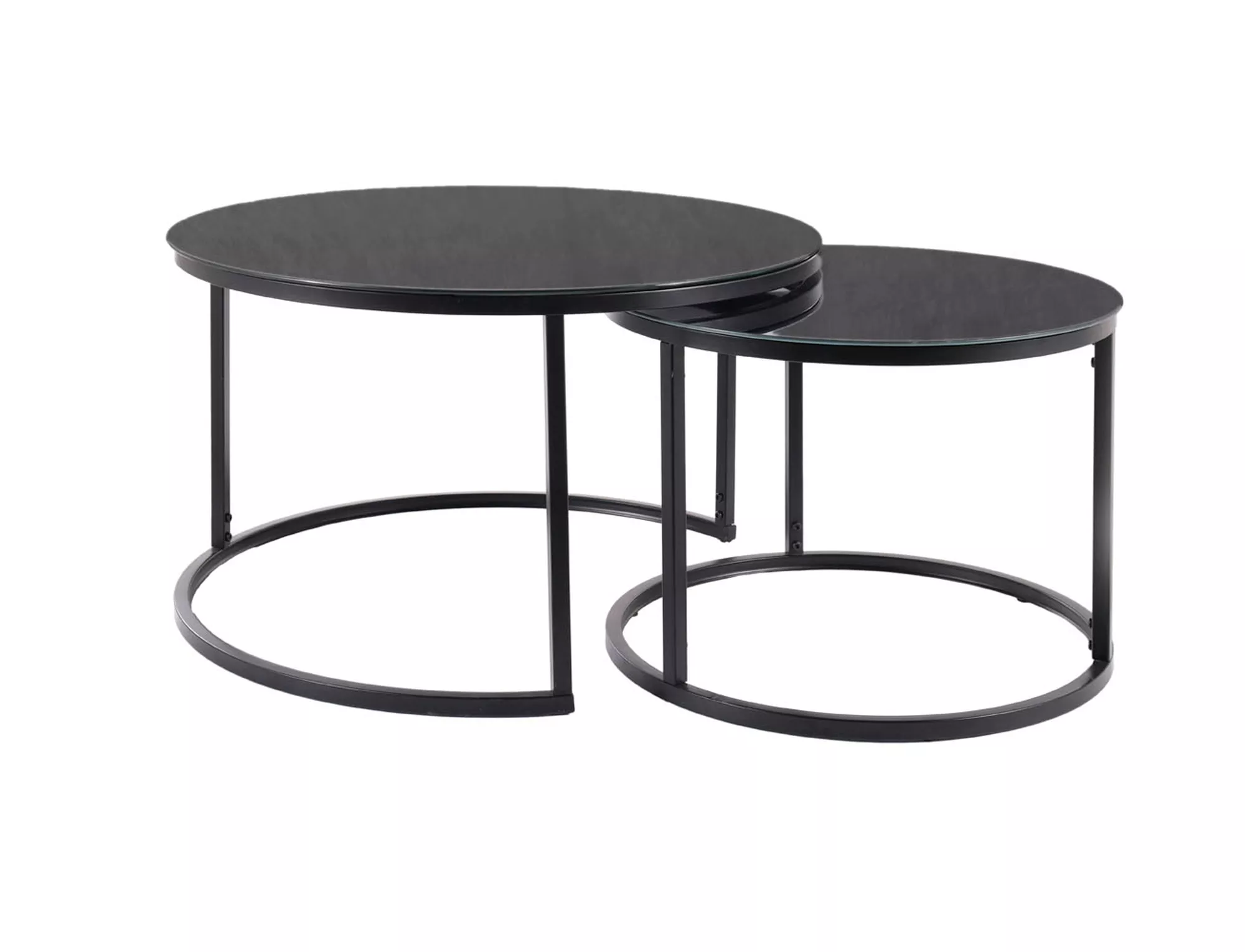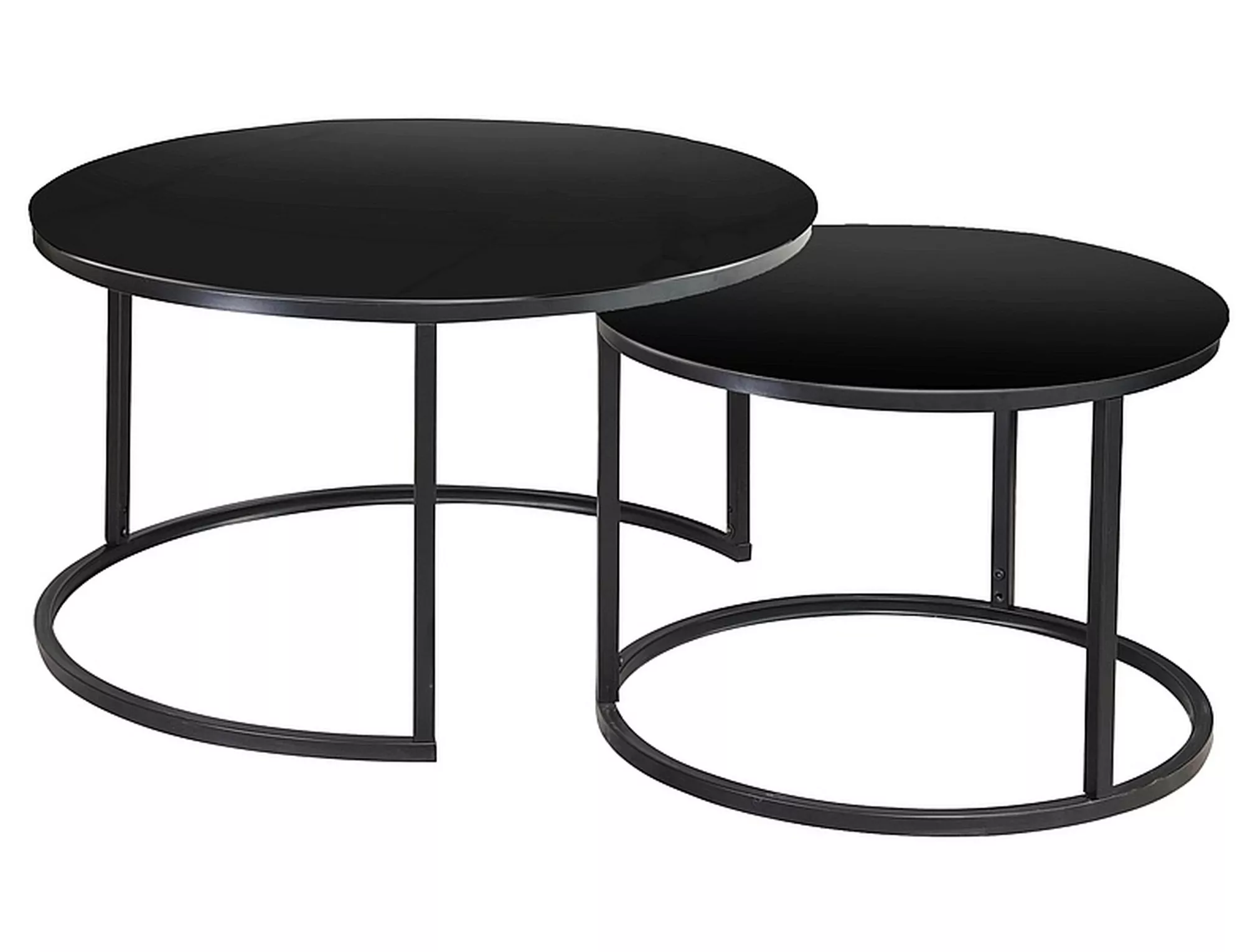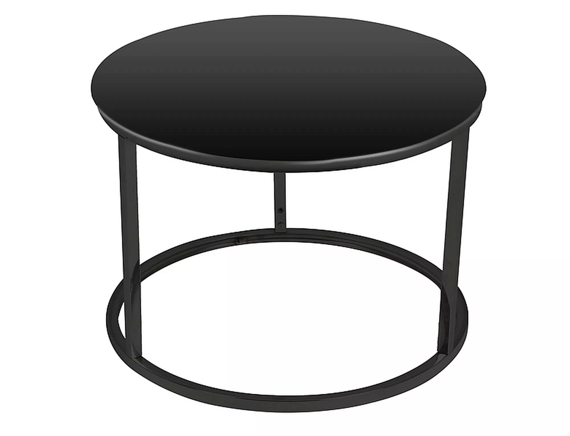 Zestaw ław, blat: szkło, stelaż: metal, kolor: czarny / czarny mat. Wymiary mniejszego stolika fi: 60, h-42cm.