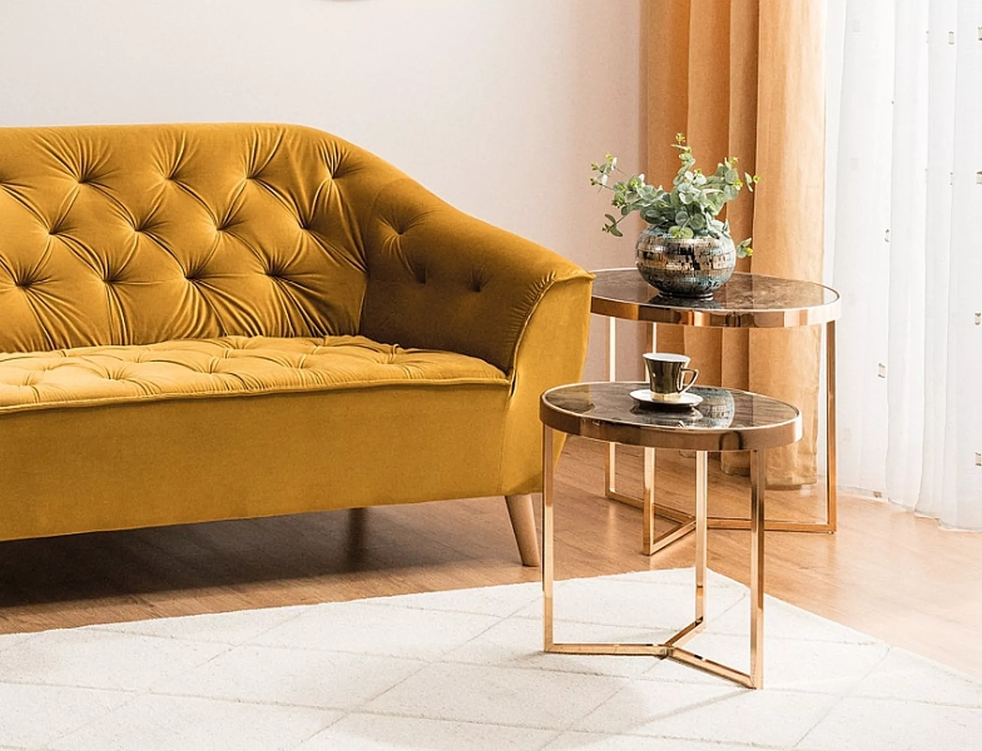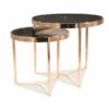 Zestaw ław, blat: szkło hartowane z efektem marmuru, stelaż: metal, kolor: złoty.