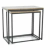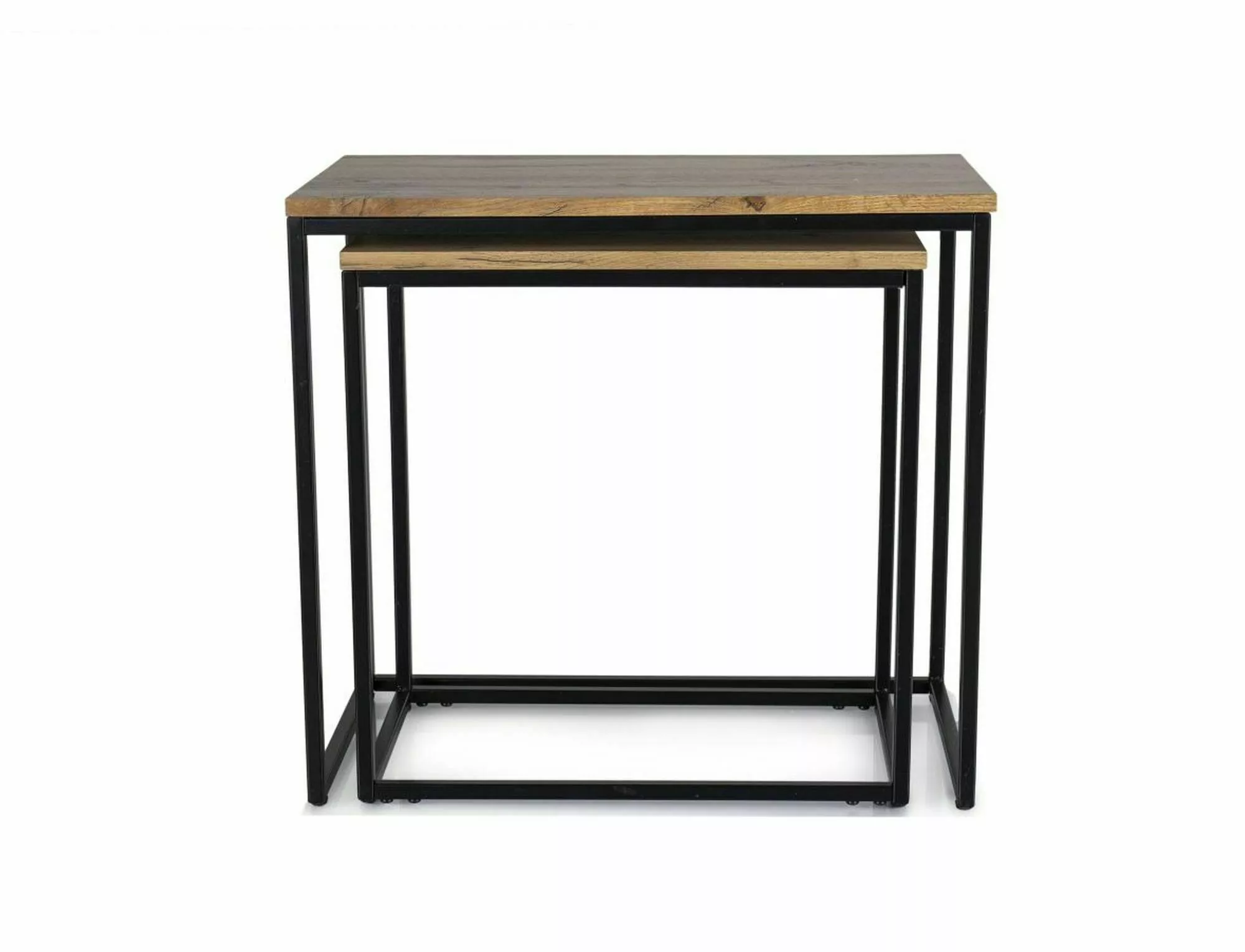 Zestaw ław, blat: MDF + okleina, stelaż: metal, kolor: dąb artisan / czarny mat. Zestaw, wymiary drugiej ławy: 50×30, h-50 cm.