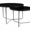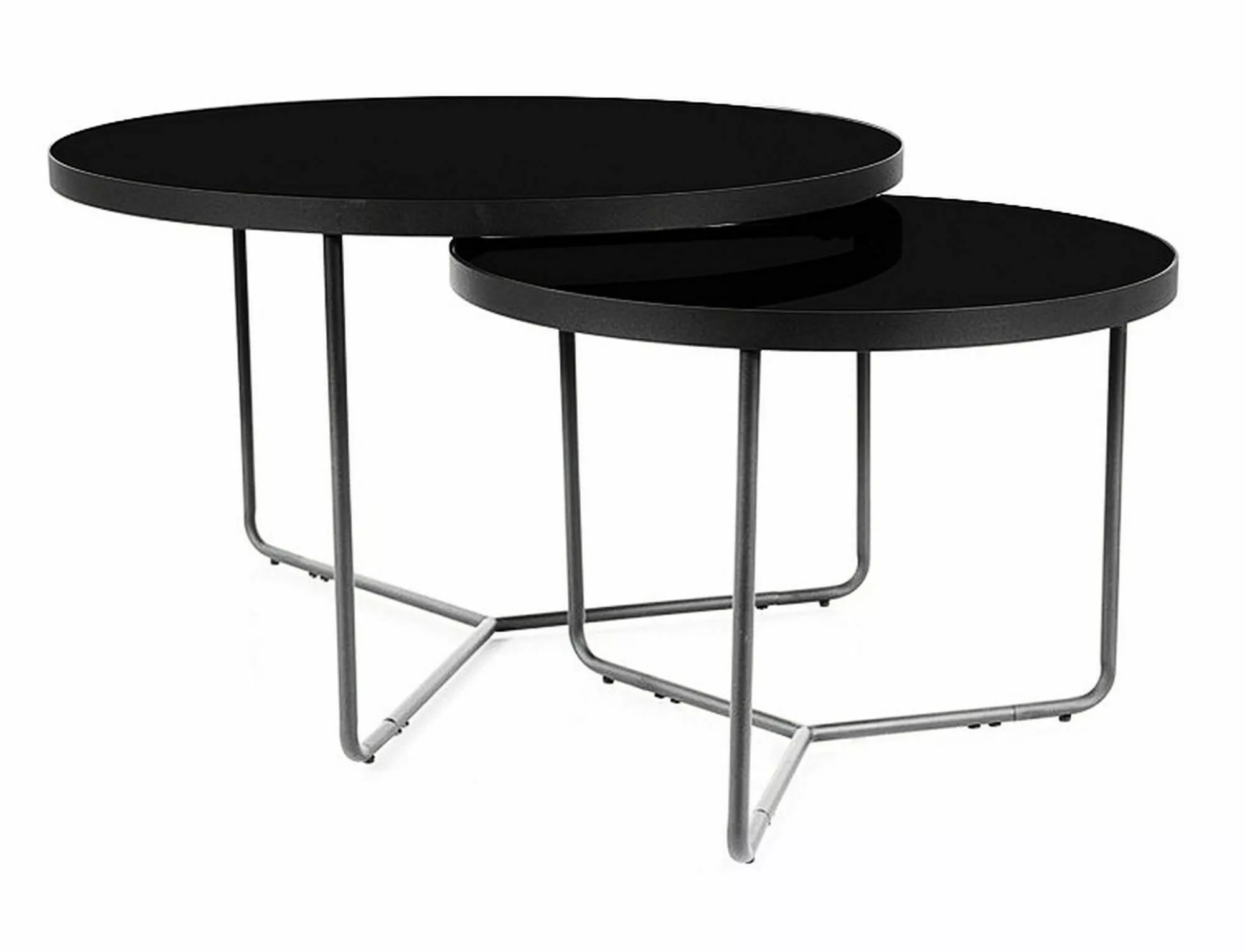 Zestaw ław, blat: szkło hartowane, stelaż: metal, kolor: czarny / czarny. Wymiary mniejszego stolika: