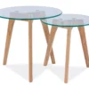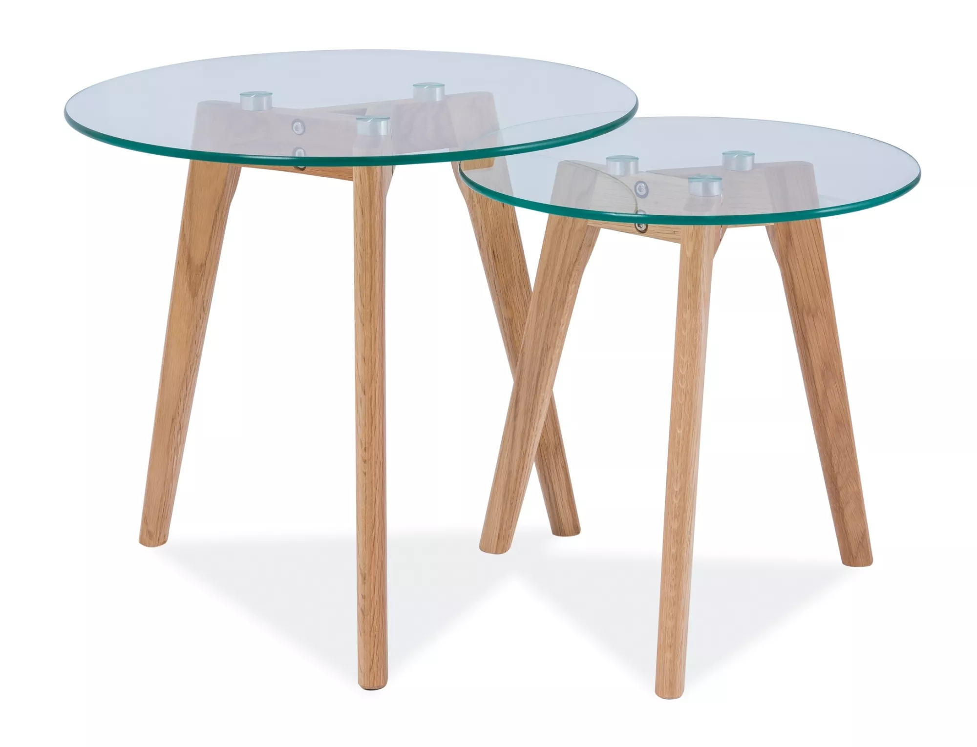 Zestaw ław, blat: szkło hartowane, stelaż: metal + okleina, kolor: dąb.