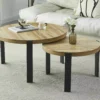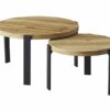 Zestaw ław, blat: MDF + okleina, stelaż: metal, kolor: dąb artisan / czarny. Zestaw, wymiary drugiej ławy: fi-60, h-40 cm.