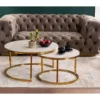 Zestaw ław, blat: ceramika, stelaż: metal, kolor: biały połysk / złoty. Zestaw, wymiary drugiej ławy: fi-45, h-40 cm.