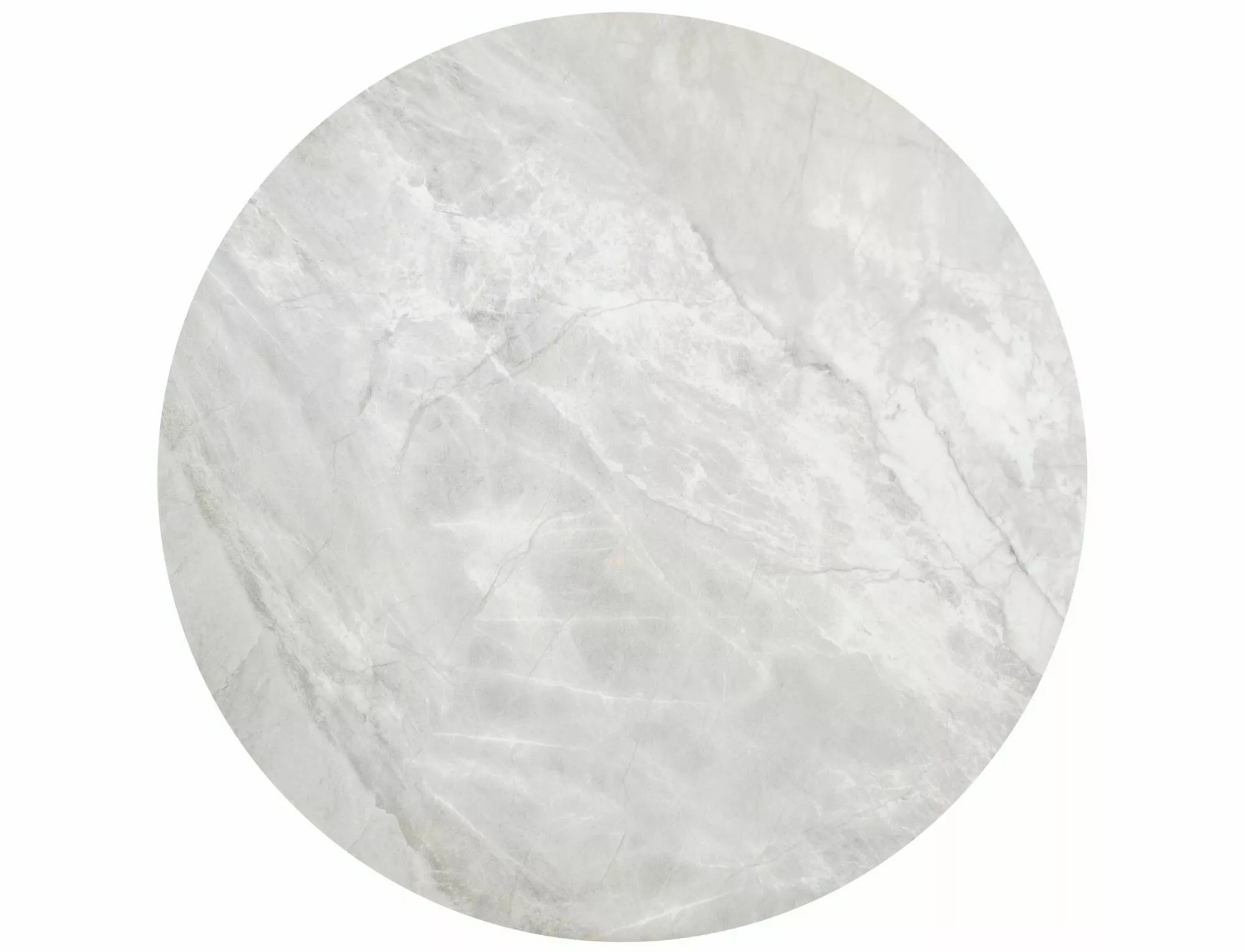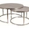 Zestaw ław, blat: ceramika, stelaż: metal, kolor: szary połysk / chrom. Zestaw, wymiary drugiej ławy: fi-45, h-40 cm.