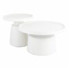 Zestaw ław, blat: metal, stelaż: metal, kolor: jasny szary. Zestaw, wymiary drugiej ławy: fi-50, h-50 cm.