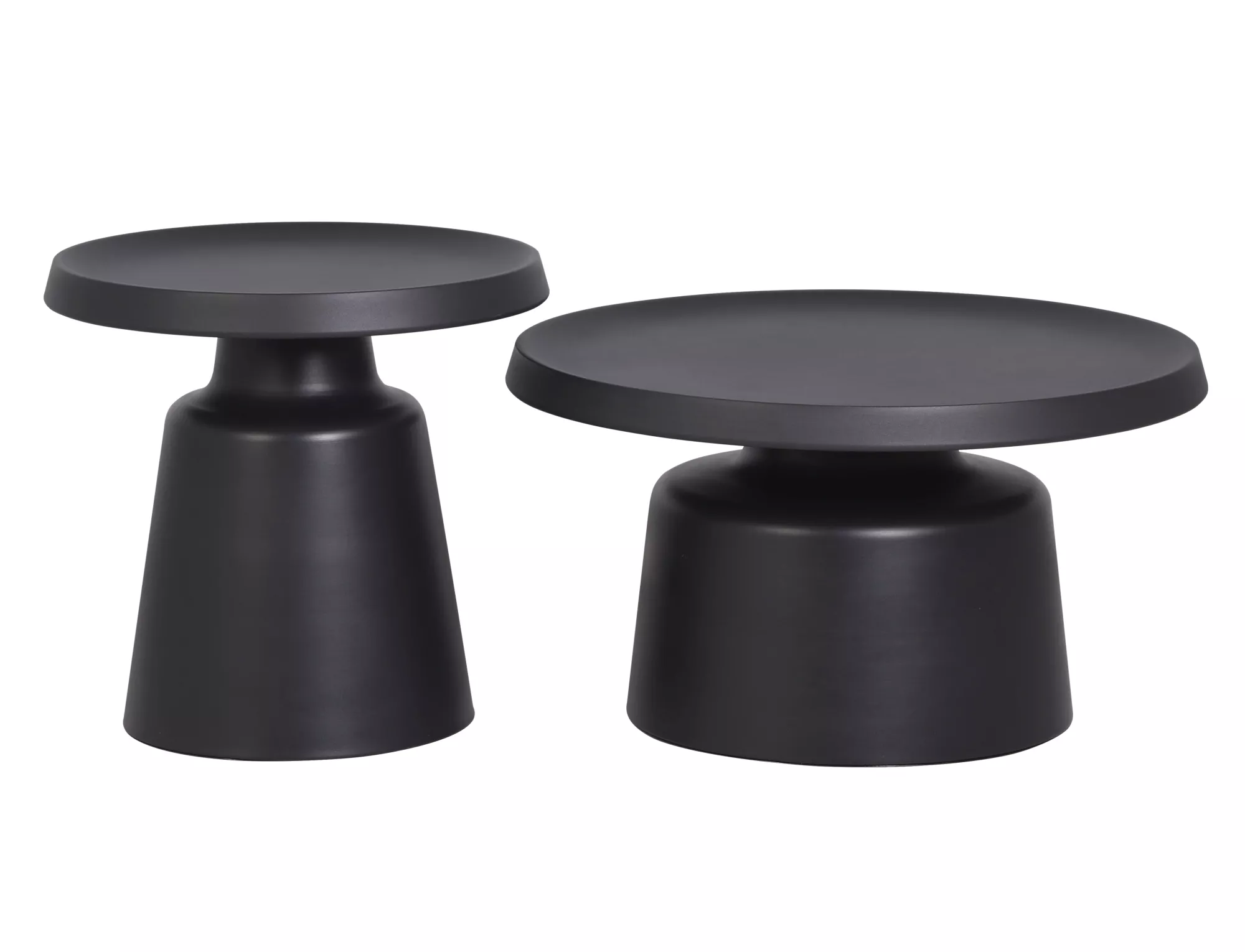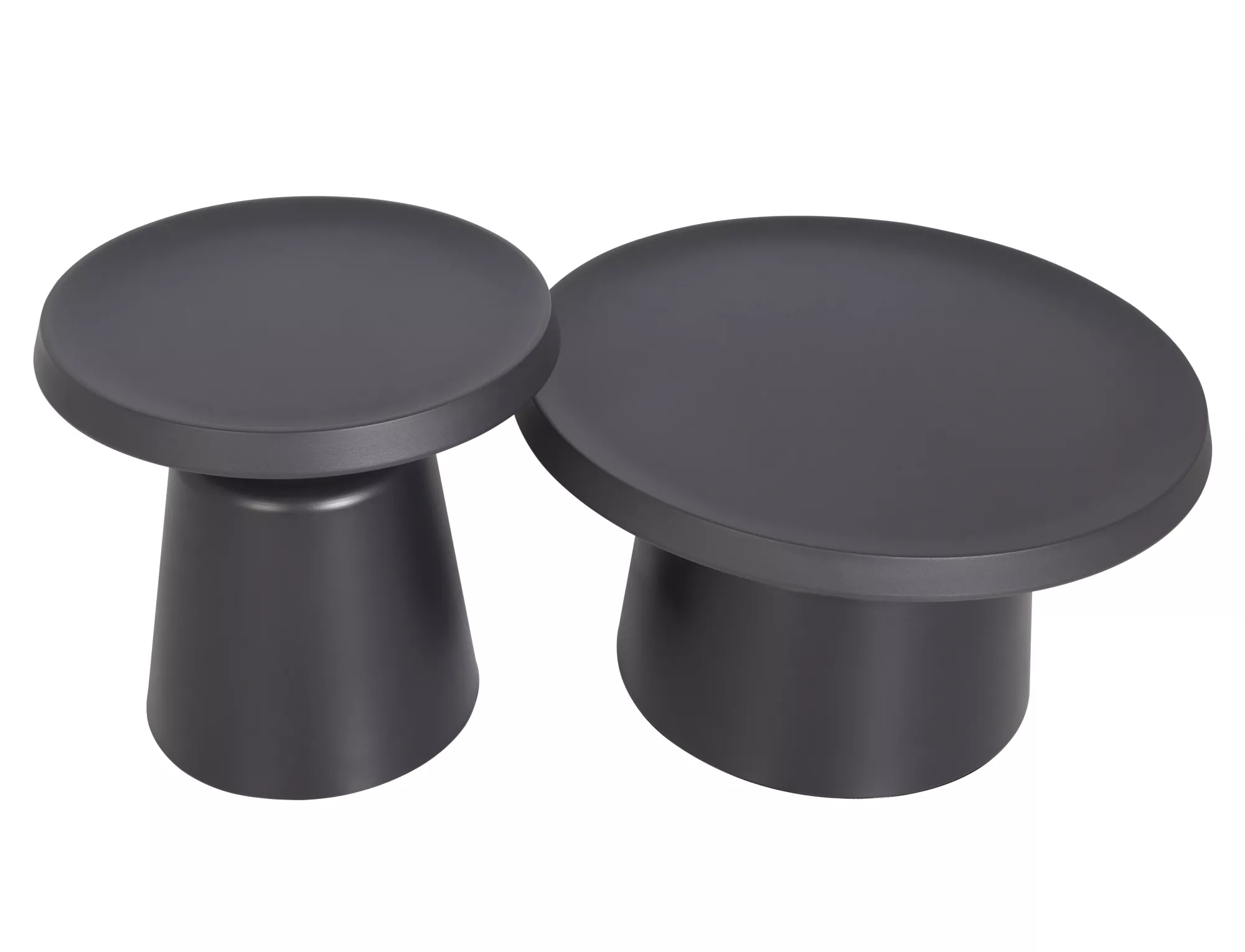 Zestaw ław, blat: metal, stelaż: metal, kolor: czarny mat / czarny mat. Wymiary drugiej ławy: fi-50, h-48 cm.