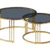 Zestaw ław, blat: szkło hartowane dymione, stelaż: metal, kolor: srebrny. Wymiary mniejszego stolika fi: 60, h-40cm.