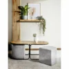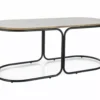 Zestaw ława + 2 pufy, blat: MDF + okleina, stelaż: metal, kolor: dąb artisan / czarny mat. W komplecie dwie tapicerowane pufy.